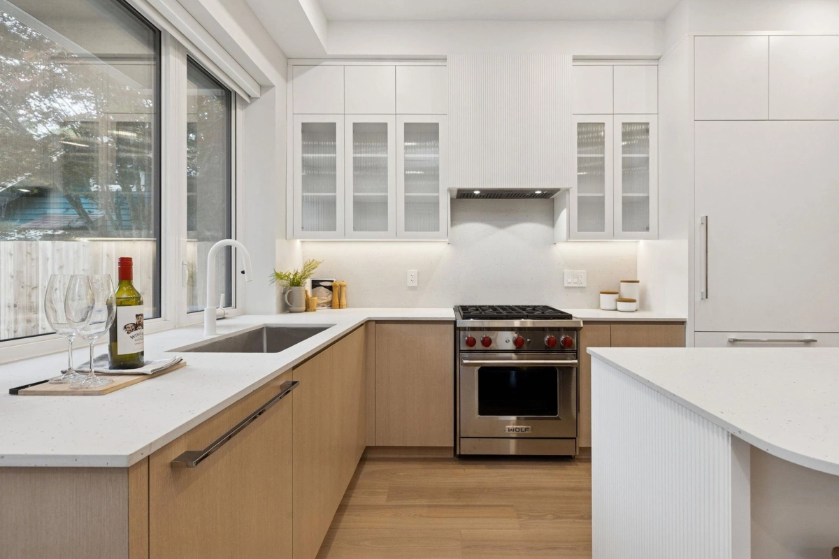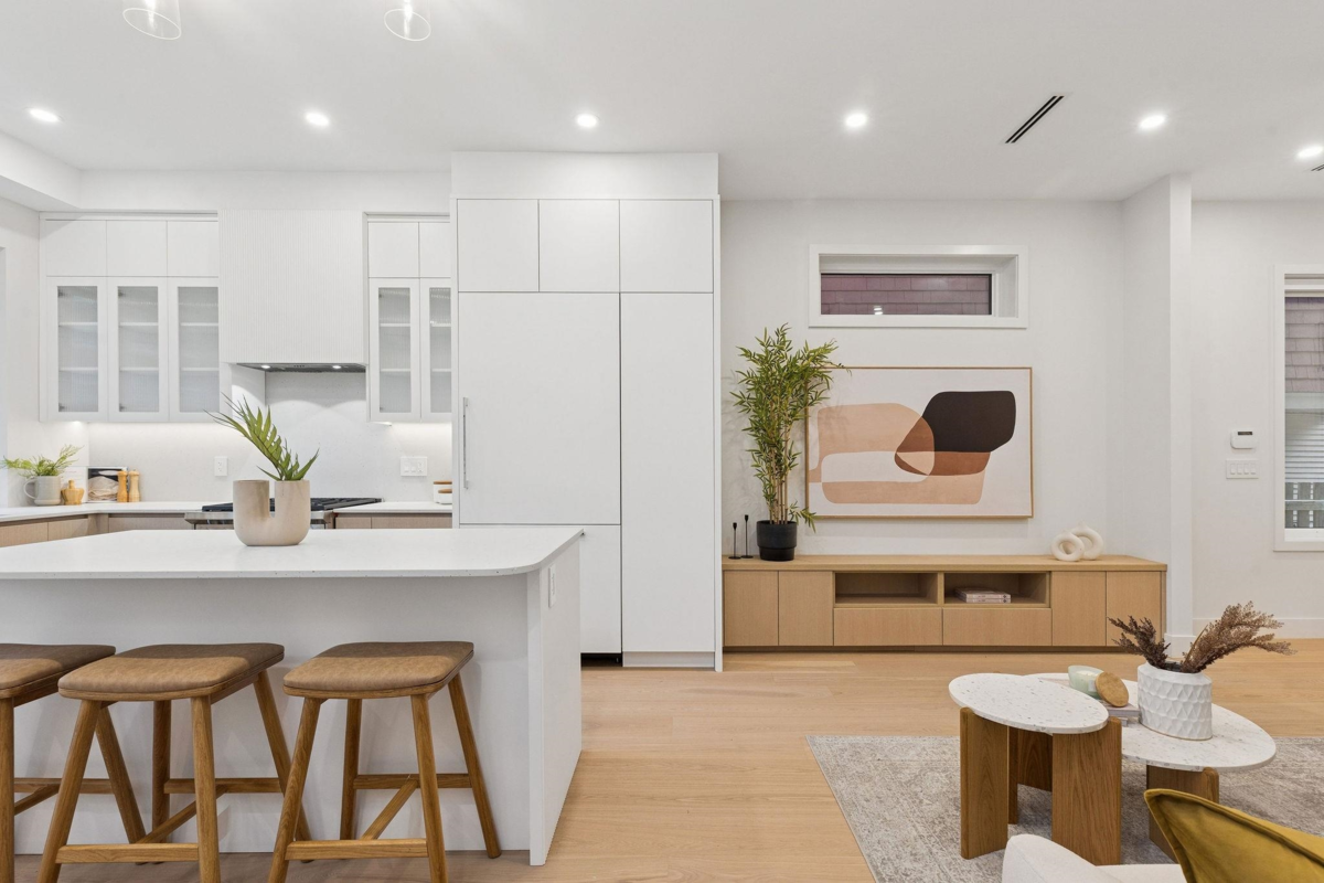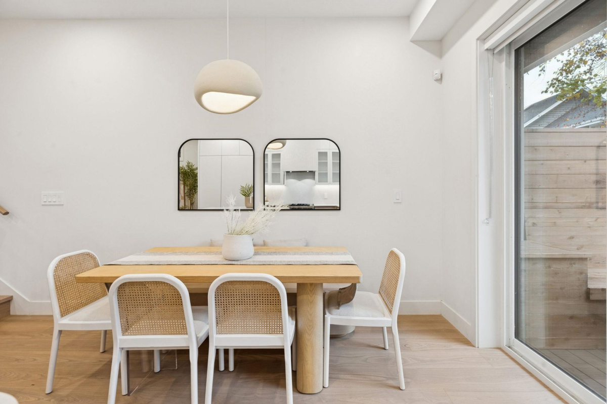This newly built side-by-side duplex blends timeless design w/luxurious sophistication. With 4-beds/3.5 baths, the home flows effortlessly across 3 levels, ensuring no wasted space. The main floor feats a sleek Miele kitchen, anchoring the open living & dining areas, complete w/built-in bench seating & hidden storage. Sliding doors extend to a private backyard oasis w/built-in seating, perfect for entertaining. Upstairs are 3-beds & 2 full baths, incl. the spacious primary suite w/spa-inspired ensuite. Top floor is the ultimate retreat w/north & south patios, full bath, & flexible bdrm that can serve as an office, gym or media room. High-end finishes, custom millwork, heat pump +AC, 550 sqft crawl space, attached garage & an unbeatable location near Main Street complete this stunning home.