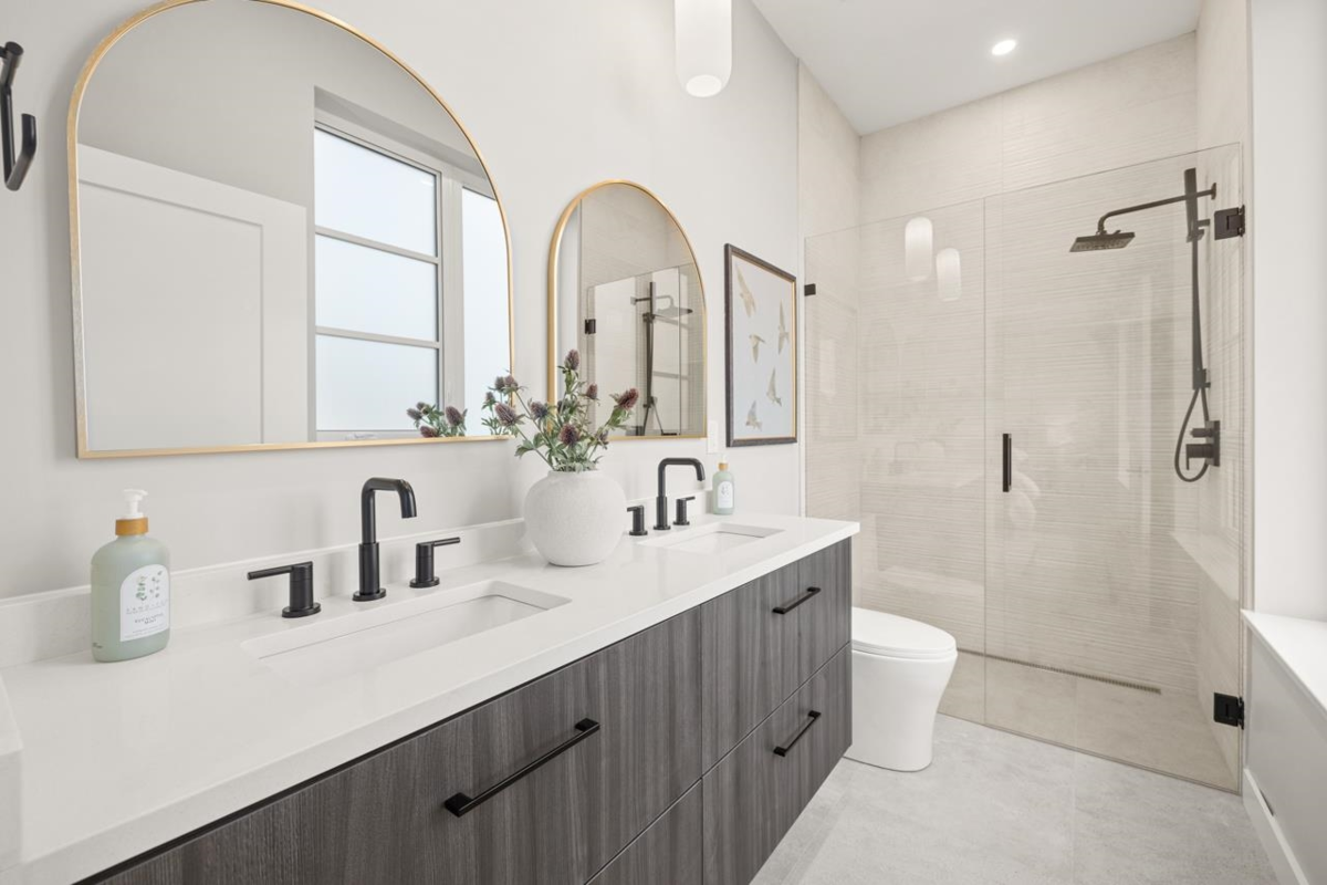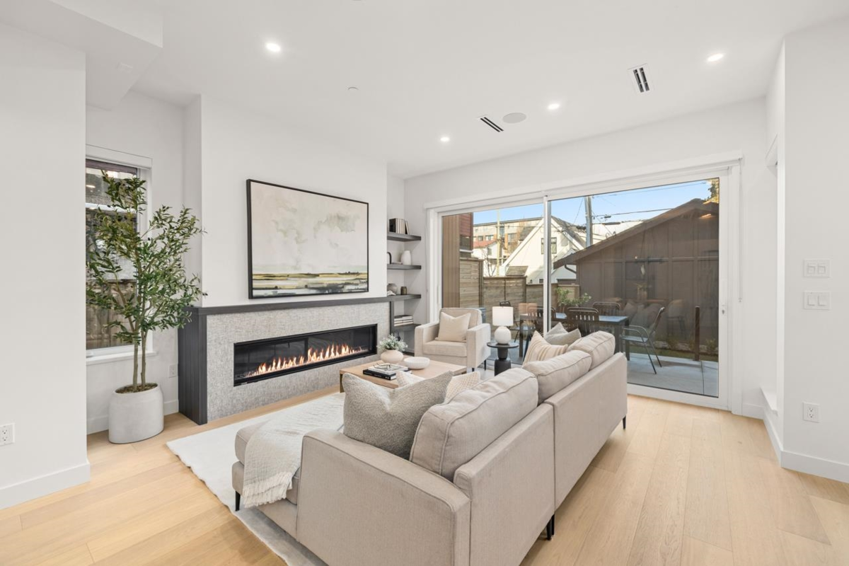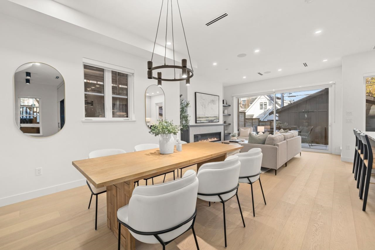 Asanti Homes presents this rare two-level 1,743 sq ft half-duplex with 4 bedrooms + a 606 sq ft fully finished accessible attic. Enter through the grand foyer into a spacious living & dining room featuring an oversized gas fireplace and direct access to a large private patio. The gourmet kitchen offers a large island perfect for entertaining and premium Fisher & Paykel appliances. Upstairs, four generous bedrooms accommodate large families or work-from-home needs. The primary bedroom includes a walk-in closet and private ensuite. Bonus: versatile 606 sq ft finished attic ideal for storage, playroom, office, or whatever your imagination desires. Expansive 33 x 146 ft lot with big back yards, detached garage with EV charging capability, in a great neighbourhood. Open House Sat/Sun 2-4pm