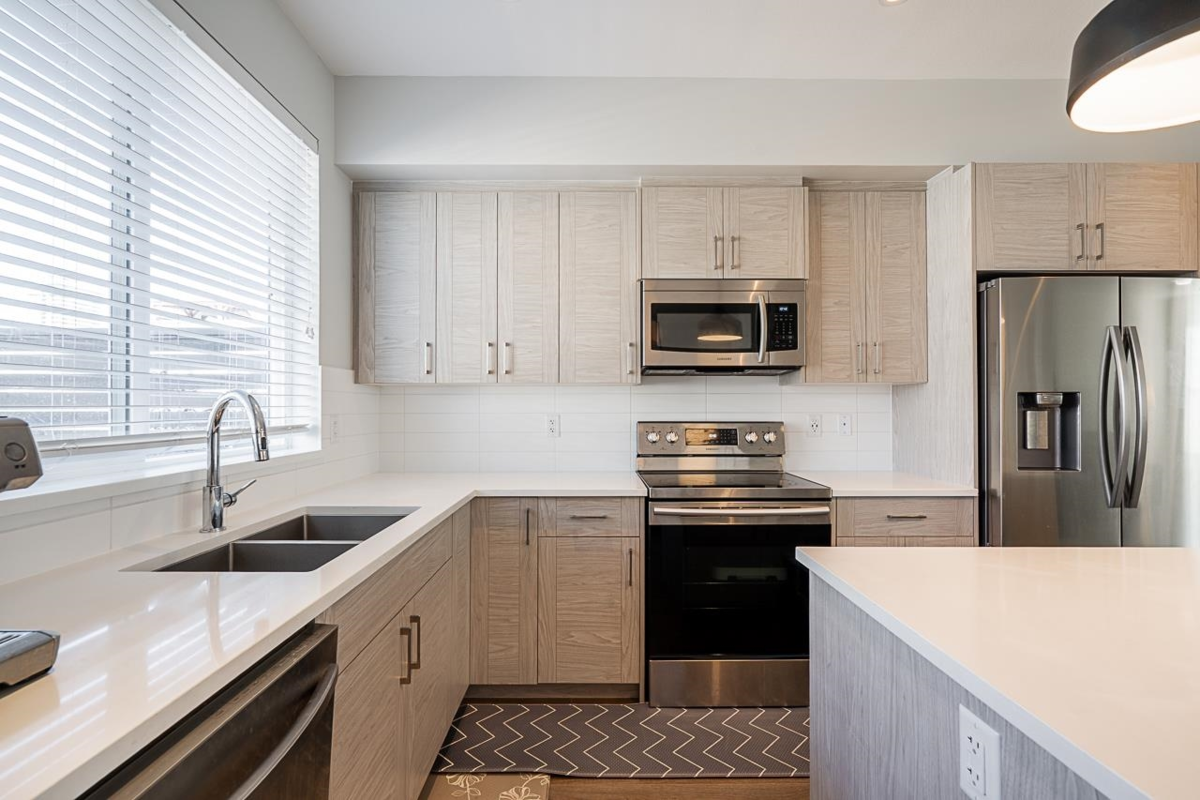 Kensington Lofts by award-winning Vesta Properties! This stunning 3-level townhome boasts a 365 sq. ft. rooftop patio —perfect for entertaining while enjoying unobstructed western valley & mountain views. The bright, open-concept great room is filled with natural light, showcasing a modern white kitchen with quartz counters, center island & stainless steel appliances. Upstairs offers 3 spacious bedrooms, including a luxurious primary suite with spa-inspired ensuite. A main floor flex room adds versatility for office, playroom, or gym. Parking is exceptional with a side-by-side double garage plus extended driveway (fits 4 cars!) Situated in one of the best locations in the complex, this home offers privacy, plenty of street parking, and easy access to trails, shops, transit & more.