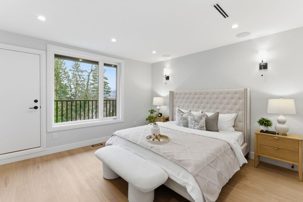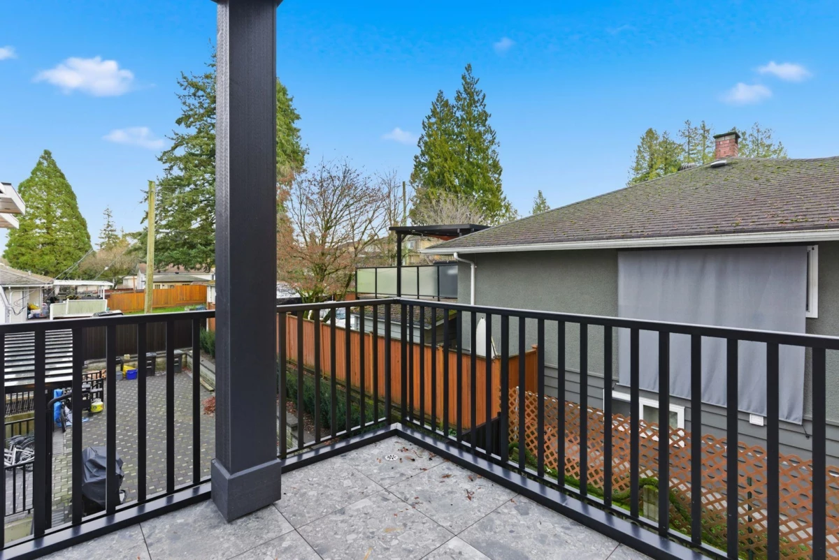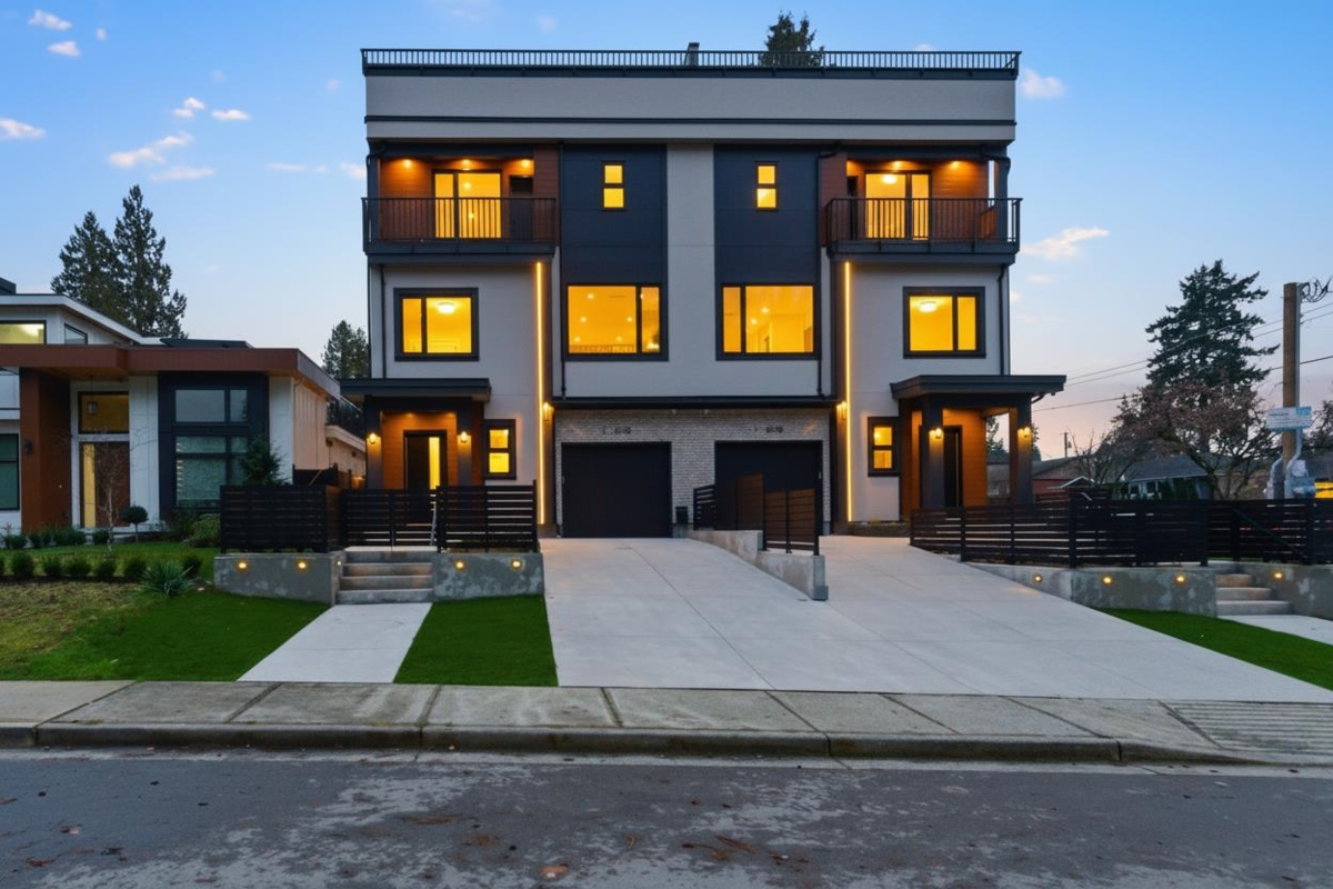Soak in MOUNTAIN VIEWS from your private ROOFTOP DECK in this just-listed modern luxury brand new 1/2 duplex. Spanning over 3,675 SF, this 6-bedroom, 7-bath stunner has engineered hardwood floors, central A/C, built-in speakers and smart home tech throughout. Entertain in the open-concept living area and chef's kitchen equipped with FISHER & PAYKEL European appliances, quartz countertops, and a full WOK KITCHEN. Four bedrooms upstairs each offer their own private ensuite, while the main level includes a full bedroom and bath — ideal for guests or flexible living. Additional highlights include a 1 BEDROOM LEGAL SUITE, an ATTACHED GARAGE and a WALKABLE location directly across from green space and steps to schools, parks, shopping, and transit. OPEN SAT & SUN 2-4PM