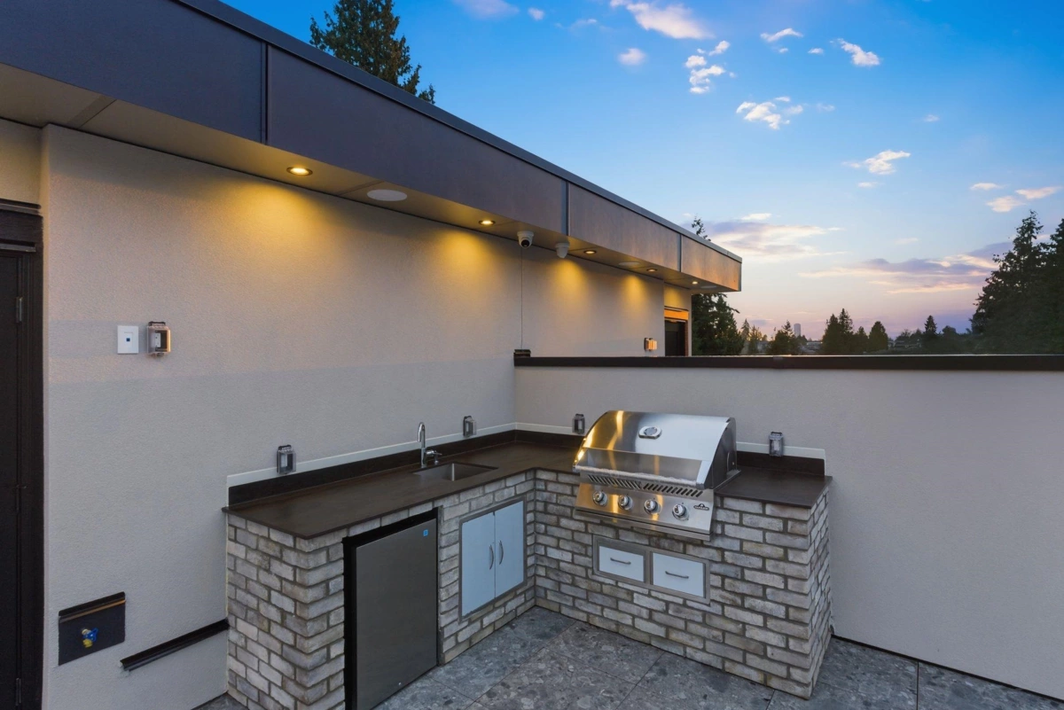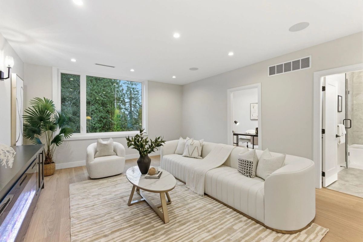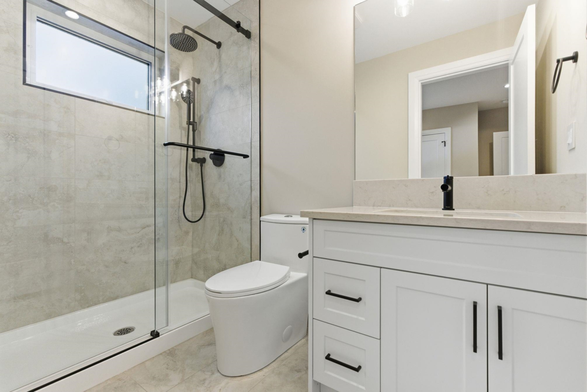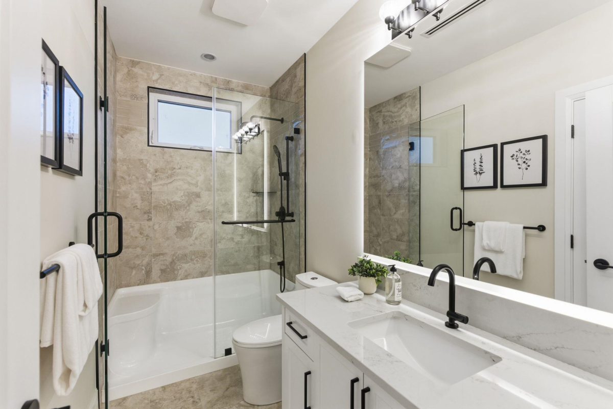 Soak in MOUNTAIN VIEWS from your private ROOFTOP DECK in this just-listed modern luxury brand new 1/2 duplex. Spanning over 3,675 SF, this 6-bedroom, 7-bath stunner has engineered hardwood floors, central A/C, built-in speakers and smart home tech throughout. Entertain in the open-concept living area and chef's kitchen equipped with FISHER & PAYKEL European appliances, quartz countertops, and a full WOK KITCHEN. Four bedrooms upstairs each offer their own private ensuite, while the main level includes a full bedroom and bath — ideal for guests or flexible living. Additional highlights include a 1 BEDROOM LEGAL SUITE, an ATTACHED GARAGE and a WALKABLE location directly across from green space and steps to schools, parks, shopping, and transit. OPEN SAT & SUN 2-4PM