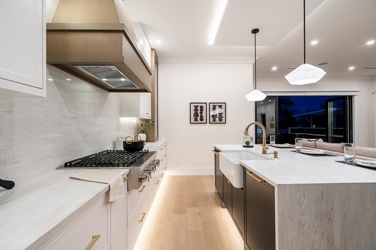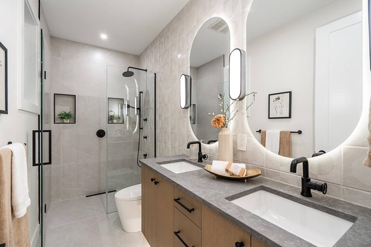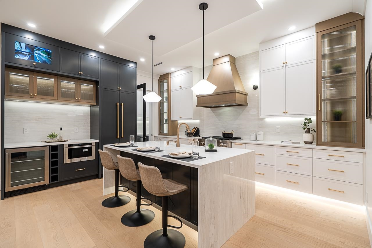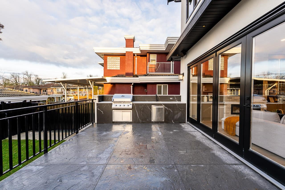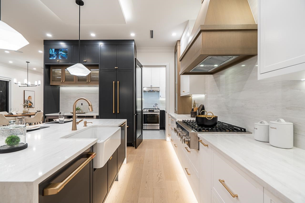 Supna Homes Built, 3 LVL Duplex over 3700 sqft of living space! TOP Floor has 3 BDRMS & 3 FULL Baths. Spacious master rm with double sinks, spa like shower with rain & jets. Spacious closet w/makeup desk. Dedicated laundry rm w/side by side machines. MAIN floor is OPEN Concept design , 10 ft ceilings, designer kitchen with built in 84 inch tall fridge, 8 ft long breakfast Island, coffee bar area. Wok kitchen w/gas stove & fridge. Mud rm! Custom entertainment wall in family room finished with bricks & fireplace leading onto a outdoor kitchen for summer barbecue. Full BDRM w/BATH & powder rm located on main. BSMT has a 2 BDRM LEGAL SUITE w/ laundry plus a spacious media rm & full bath. Control 4 Automation for lights, music & blings, hardwood heated floors, security, CCTV, 2 car garage....