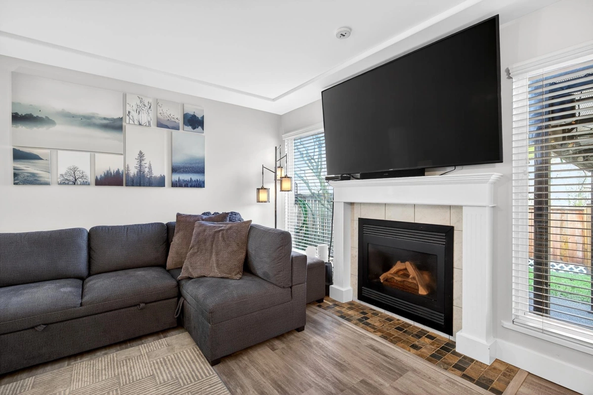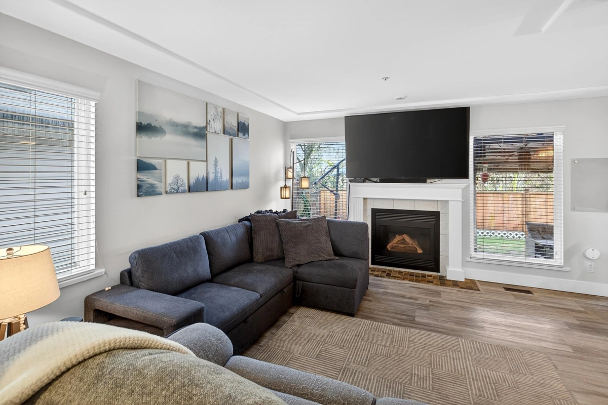 Welcome to DERBY CREEK - rarely available duplex-style townhome in a quiet, well-run 11-unit community located in the heart of Walnut Grove. Offering almost 2200sqft, 4 beds, 3 baths, finished basement & A/C, this home provides the space and functionality of a detached home with the ease of strata living. Generous room sizes and flexible layout ideal for families or work-from-home living. Just minutes from top schools, parks, rec centre, shopping and commuter routes, this one checks all the boxes! The main floor features cozy living area w/gas fireplace, walk-out to fenced backyard, large kitchen, bedroom/office and powder room. Upstairs primary suite walk-in closet & 3pc ensuite, 2 large bedrooms, laundry room and main 4pc bath. Downstairs almost 500sqft rec area plus storage galore!