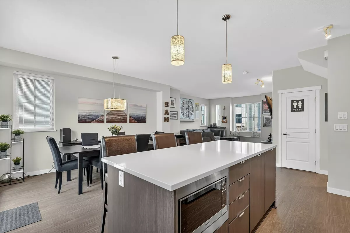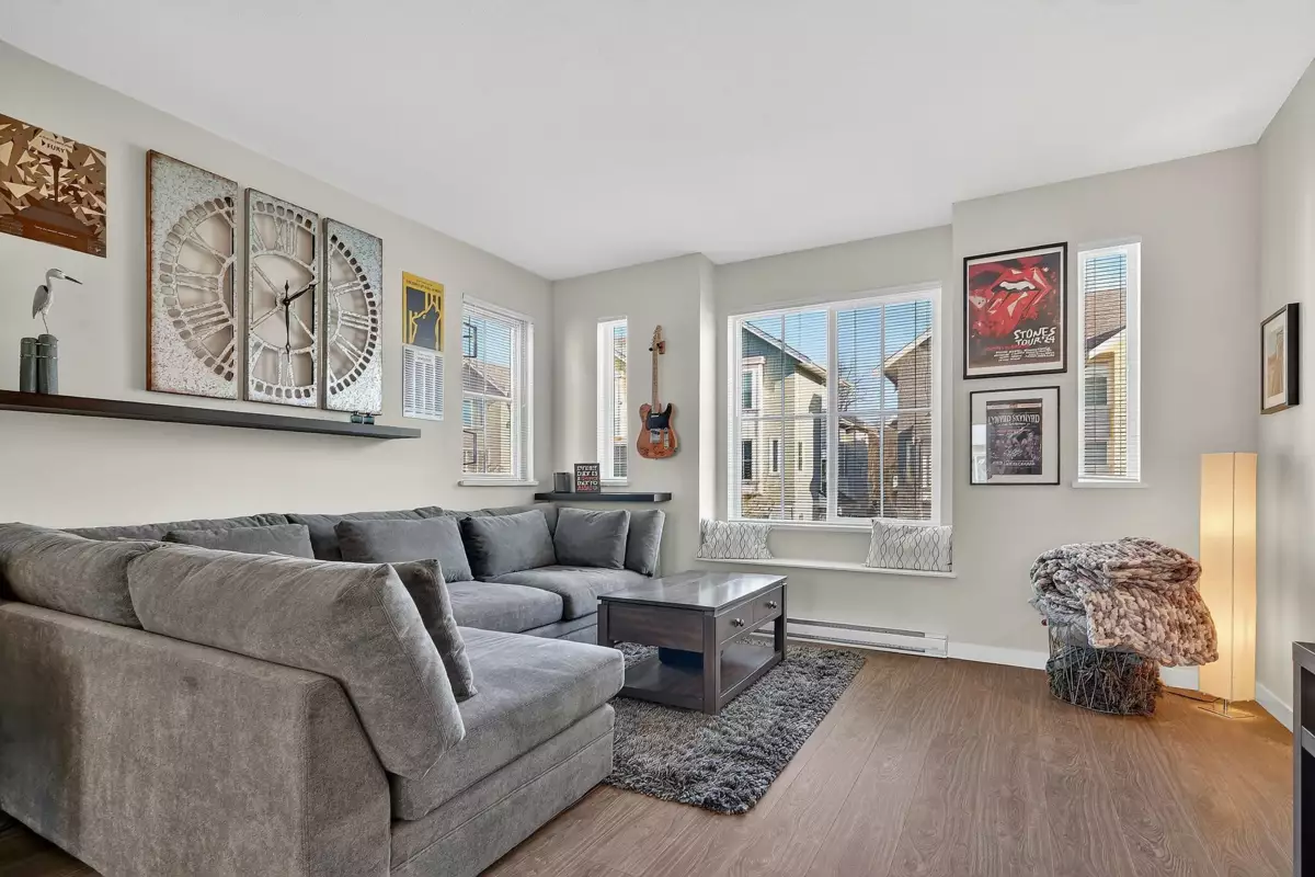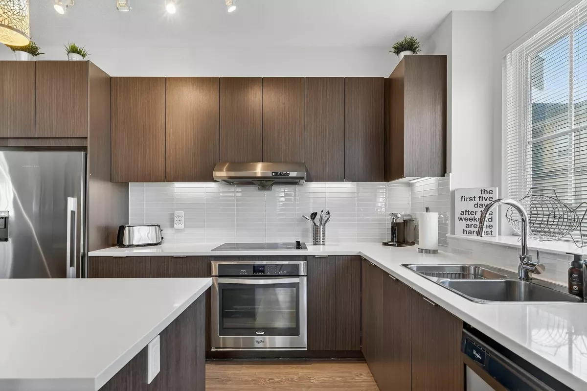 Spacious, 1570 square foot; 3 bedroom + 3 bathroom end-unit townhome at fabulous Fairwinds by Poygon! This bright, family-friendly home offers an open-concept main floor with 9 ft ceilings, laminate flooring, and windows on multiple sides for excellent natural light. Enjoy outdoor living on your private deck, plus the bonus of a large garage for parking, storage, bikes and gear. The gourmet kitchen features stainless steel appliances, stone countertops, and a central island - perfect for everyday living and entertaining. Fairwinds' seaside-inspired community is minutes to Hampton Cove Golf Course, Captain's Cove Marina, CEFA, and Nielsen Grove Elementary, with exclusive access to the 12,000+ sq. ft. Hampton Club: outdoor pool, basketball court, party rooms and more.