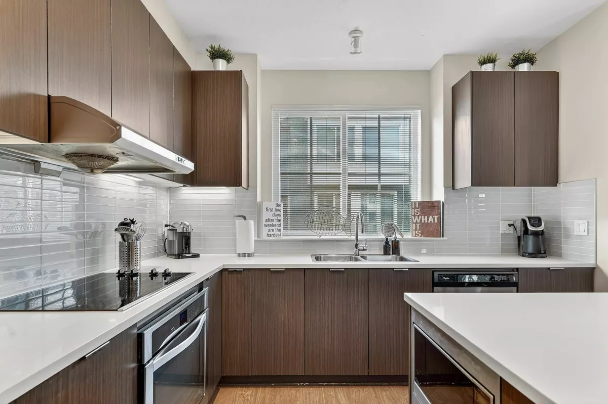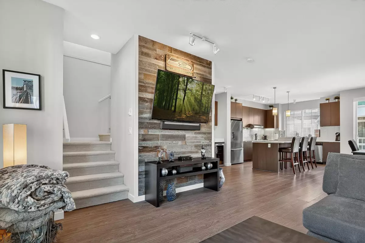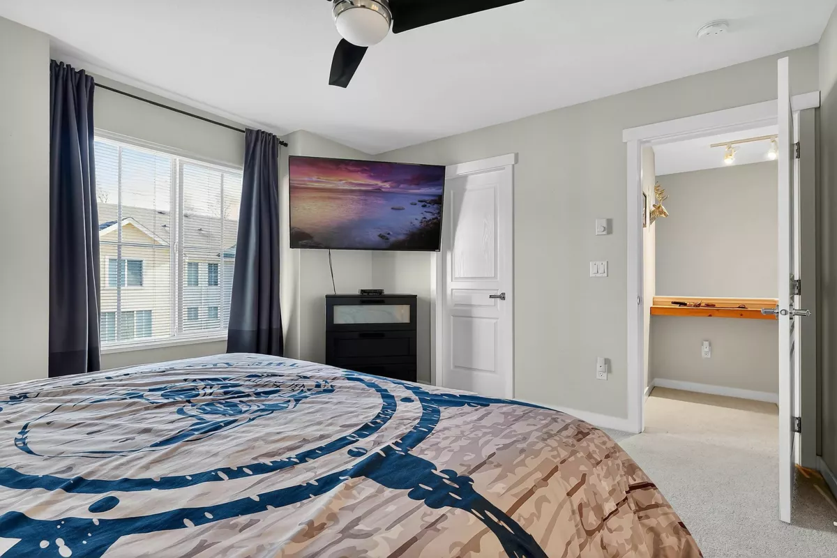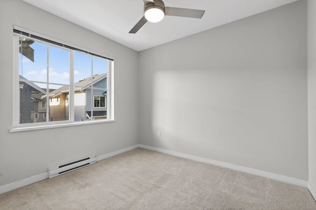 Spacious, 1570 square foot; 3 bedroom + 3 bathroom end-unit townhome at fabulous Fairwinds by Poygon! This bright, family-friendly home offers an open-concept main floor with 9 ft ceilings, laminate flooring, and windows on multiple sides for excellent natural light. Enjoy outdoor living on your private deck, plus the bonus of a large garage for parking, storage, bikes and gear. The gourmet kitchen features stainless steel appliances, stone countertops, and a central island - perfect for everyday living and entertaining. Fairwinds' seaside-inspired community is minutes to Hampton Cove Golf Course, Captain's Cove Marina, CEFA, and Nielsen Grove Elementary, with exclusive access to the 12,000+ sq. ft. Hampton Club: outdoor pool, basketball court, party rooms and more.