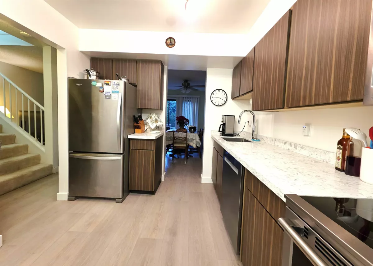 Welcome to Timberlane! This nicely redone 3 generous-sized bedroom, 2 bath townhome features a brand new kitchen with new cabinet doors and countertop, plus a brand new composite deck with new patio door and screen, along with a new hot water tank. Enjoy peace of mind with additional renovations completed in 2023, including updated vinyl flooring, a refreshed powder room, new stove, dishwasher, fridge, and fresh paint. Family-friendly complex close to schools, parks, Green Timbers trails, transit, Surrey Memorial, shopping and amenities. Don’t miss out!
