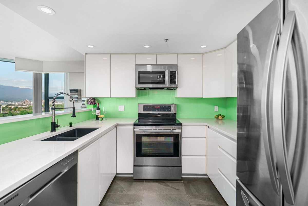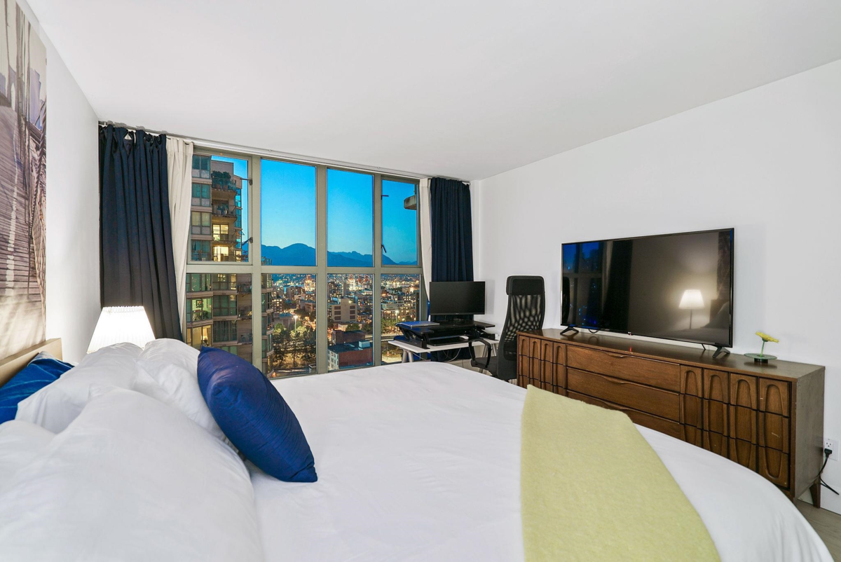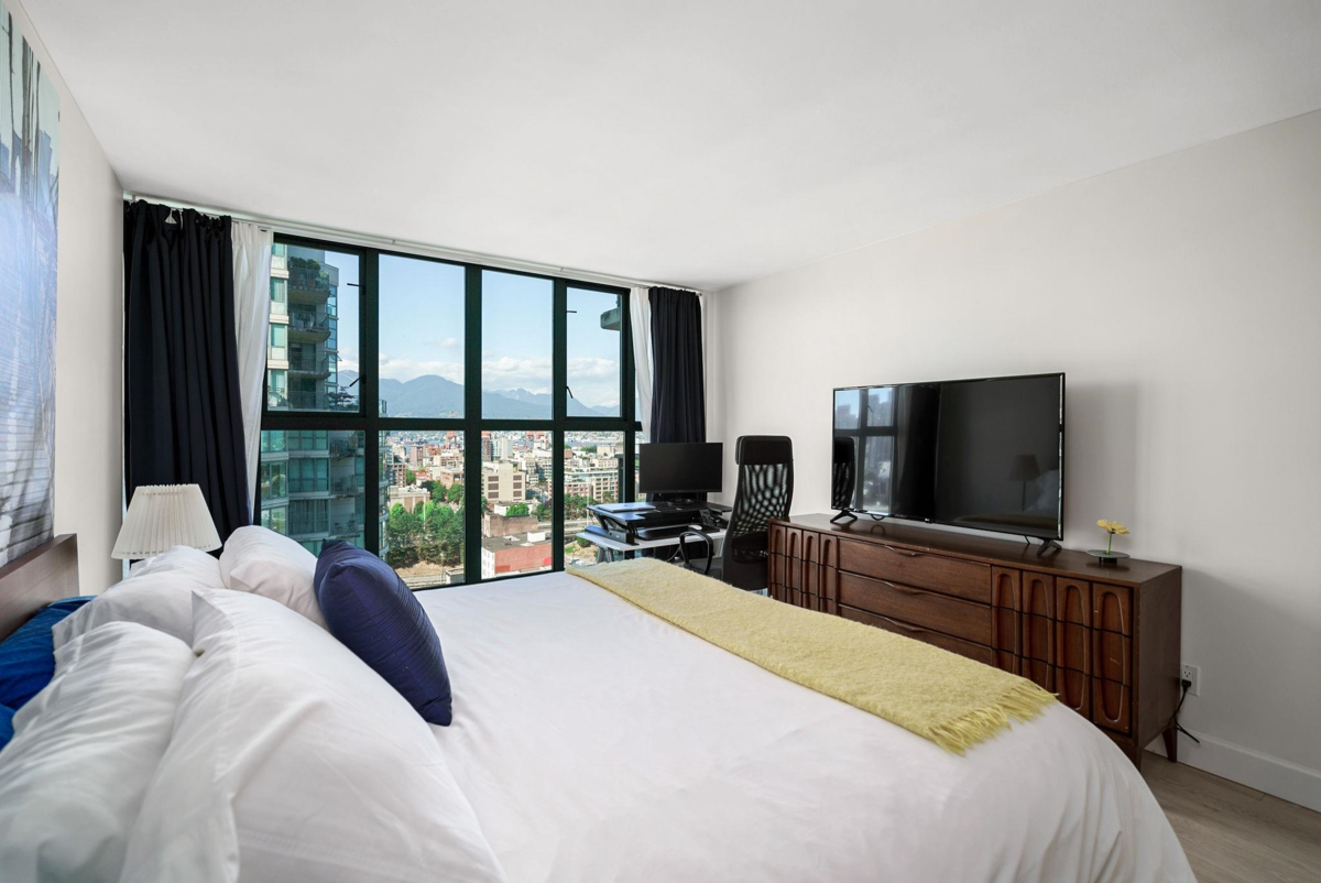 Welcome to the National. Built by Bosa, this gorgeous 2bed, 2bth fully renovated unit offers it all. Let's start with the oversized balcony with amazing views of False Creek and the North Shore mtns. Open concept with tonnes of natural light and expansive views. 2 large bedrooms both with built-ins in the closets as well as a murphy bed in the second bedroom. Both bathrooms fully renovated with gorgeous showers and finishings and heated floors in the primary bath. Great building with lots of upgrades, 2 parking,EV charger, 1 locker, pet friendly with doggy bath, swimming pool, gym and sauna. Walk to seawall, cafes, skytrain, shopping and more. Well priced. Call now!