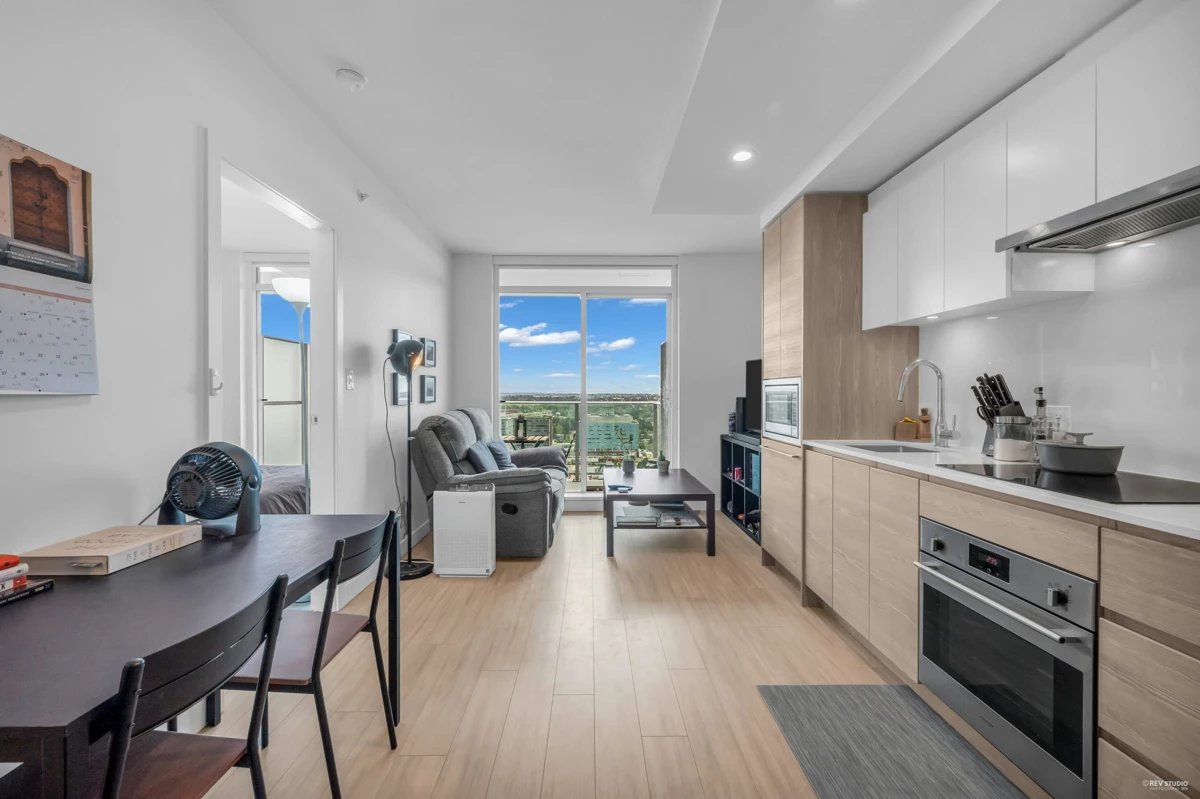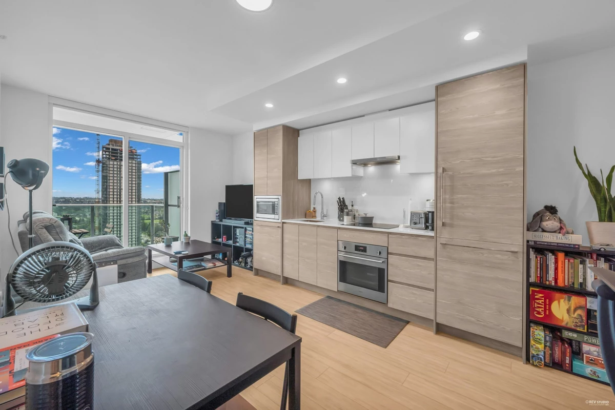 Welcome to the heart of Surrey Central at the desirable King George Hub 2 by award winning developer PCI. This efficiently laid out & bright, south facing 1 bed unit with city and mountain viewsboasts a gourmet kitchen featuring Fulgor Milano and Blomberg appliances, quartz countertops and laminate flooring throughout with a generously sized balcony accessible from both the bedroom & living area. Enjoy an abundance of amenities including a fitness center, theatre rooom, rooftop lounge with BBQ, party & games room, children's play area & much more! Prime location just steps to King George Skytrain, Central City Mall, SFU Surrey Campus, Save on Foods & many more dining and convenient options within walking distance. Parking & storage included! Open house Sat & Sun, June 8th & 9th 2-4pm.
