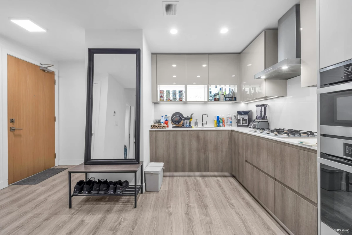 Highline by Thind Properties places you in the centre of Metrotown's vibrant urban lifestyle, directly across from the SkyTrain for unbeatable convenience and connectivity. This stylish Junior 2 Bedroom, 1 Bath home offers an efficient layout with high 9' ceilings, floor-to-ceiling windows, air-conditioning, and a premium Italian-inspired kitchen with full Miele appliances. Enjoy a covered balcony with beautiful mountain and city views, plus club-level amenities including concierge, a fully equipped gym, spa-style sauna and steam rooms, lounges, and guest suites. Steps to Metropolis Shopping Centre, T& T, Bonsor Recreation Complex, dining and Central Park - a perfect choice for modern city living and a high-demand investment property in Burnaby's premier location.