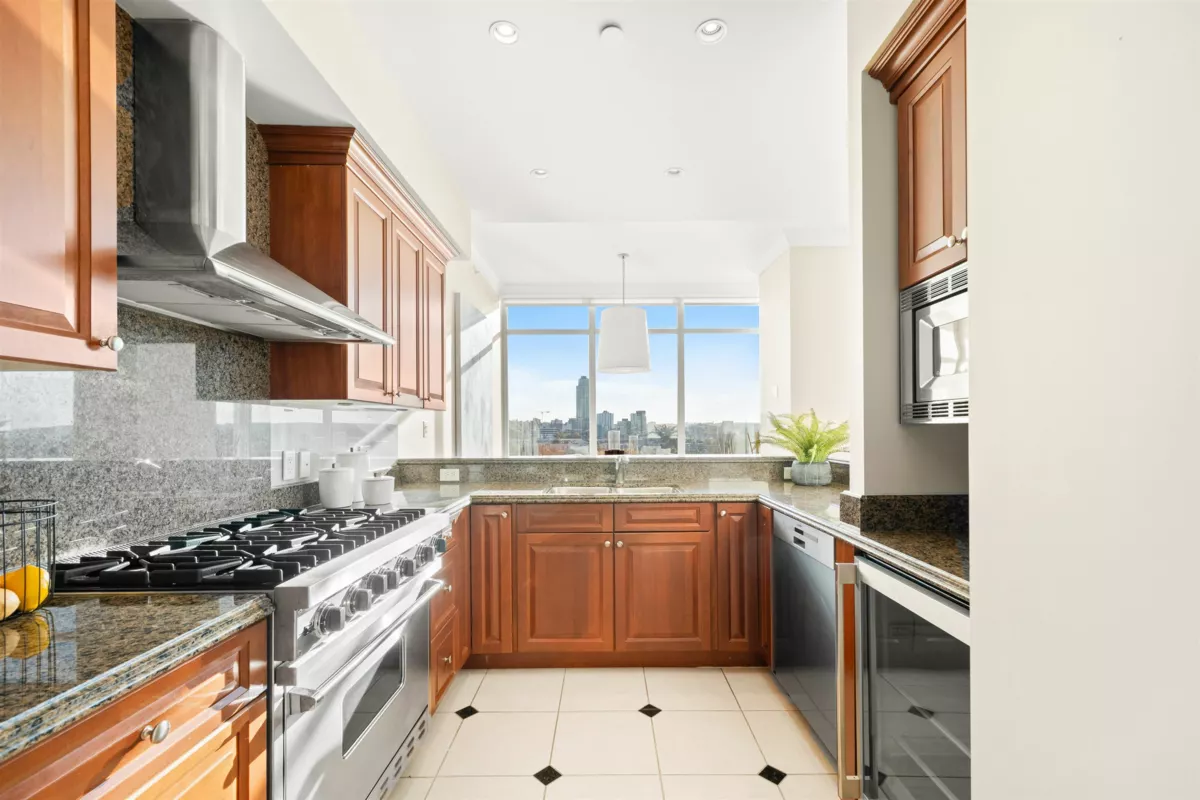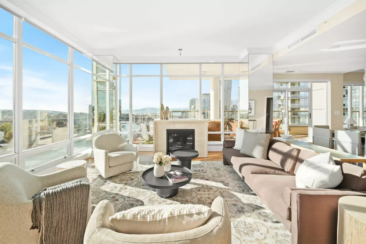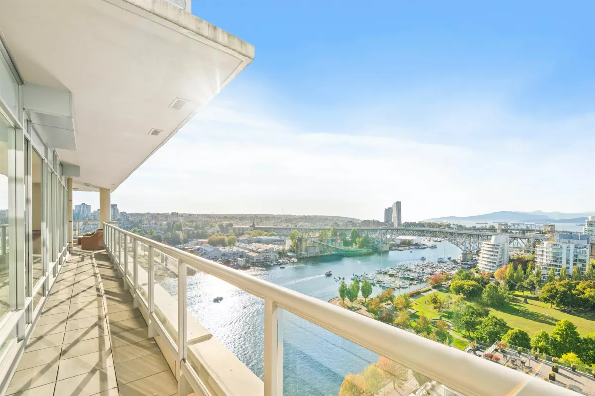 Sub-Penthouse luxury living at the prestigious King’s Landing! This over 2,600 Sq. Ft. 3 bed, 2.5 bath residence offers nearly 500 Sq. Ft. of terrace space with views of the marina, city skyline, & Mountains. Hardwood floors flow throughout, marble-accented bathrooms, marble gas fireplace, wood cabinetry, granite counters, with Kohler & Grohe fixtures. A chef’s dream kitchen showcases high appliances. With soaring 10 Ft. ceilings and floor-to-ceiling windows, this home is as spacious as it is refined. Private 2-car garage & Storage Room included. Residents enjoy resort-style amenities with gym, pool, sauna, Billard’s room, theatre, patio, & guest suites. Located steps from Vancouver’s finest dining & shops, this rare offering is the perfect blend of sophistication, comfort, & convenience!
