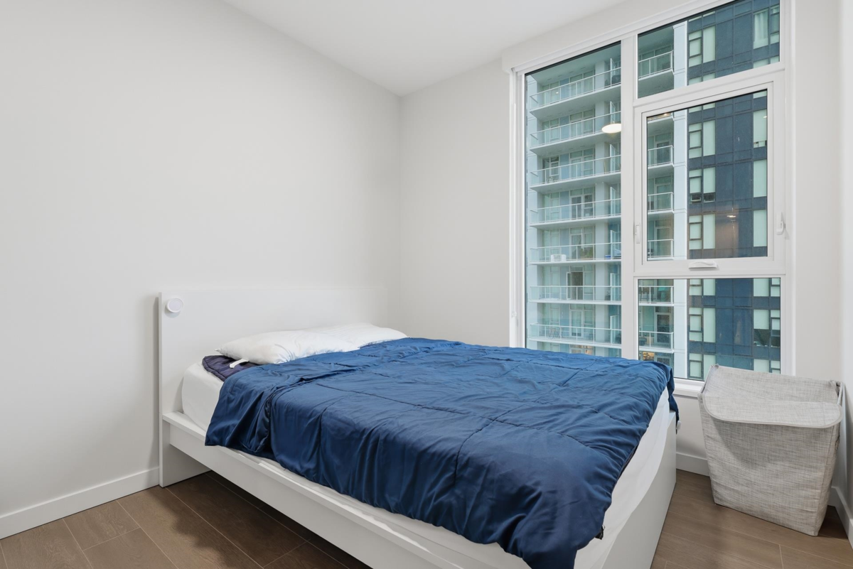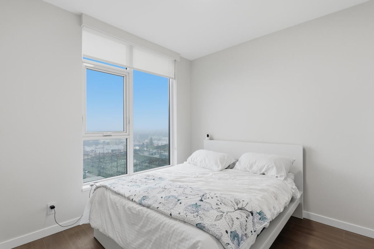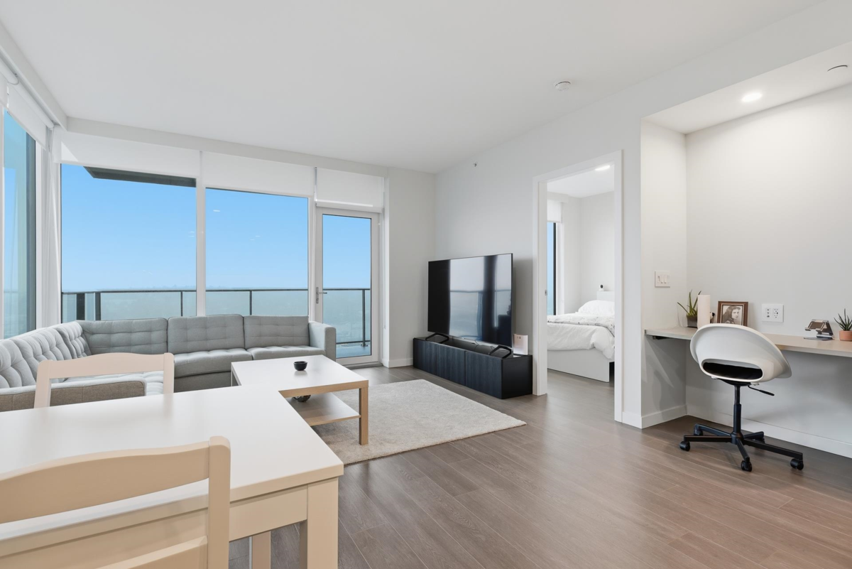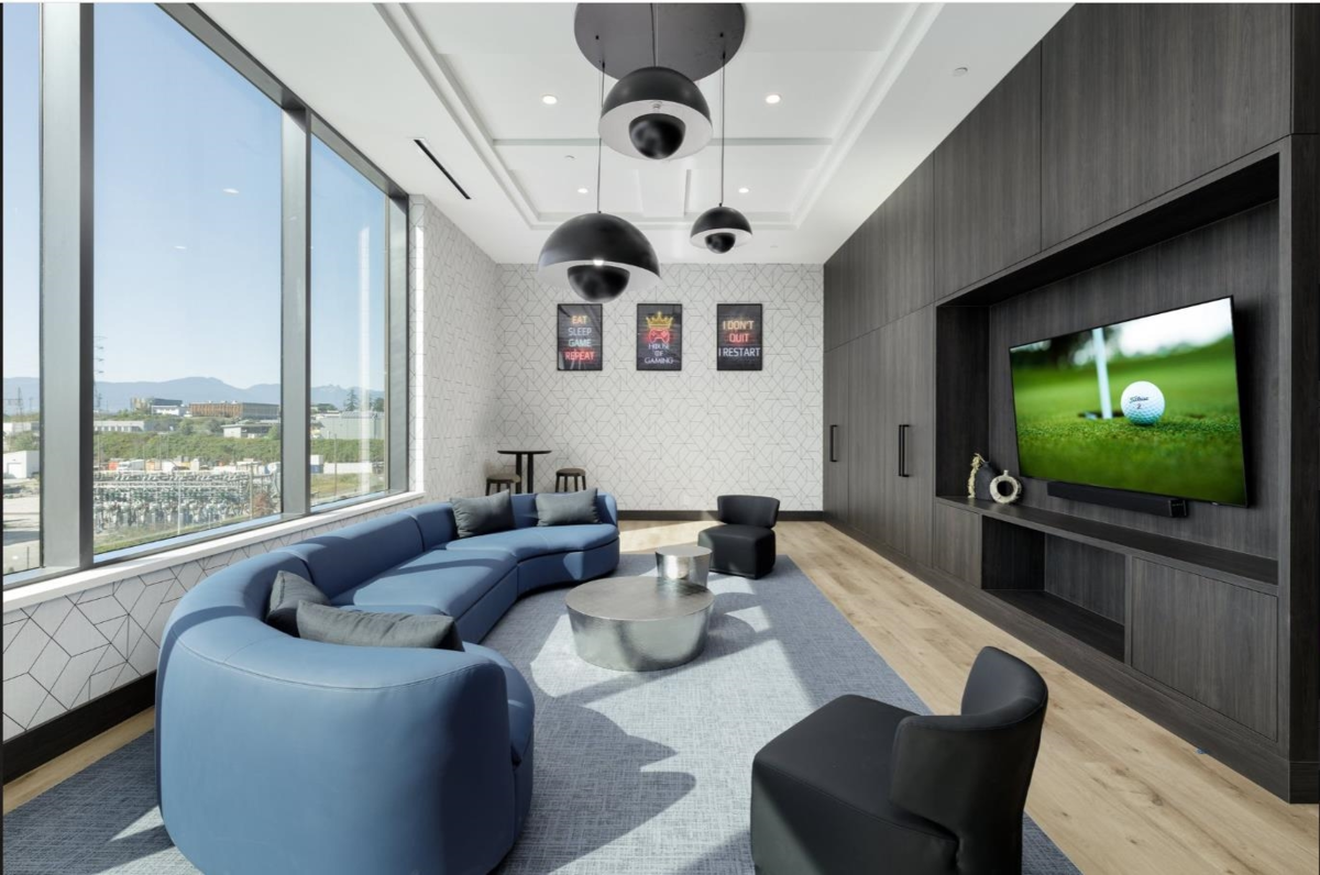 Welcome to Gilmore Place in Burnaby! Experience stylish urban living in this 2 Bed + Den, 2 Bath home in vibrant Brentwood. The spacious master bed features an ensuite and walk-in closet, while the functional layout, laminated flooring, heat pump, and gourmet kitchen with premium appliances, gas cooktop, and quartz countertops complement city & mountain views. Enjoy access to over 75,000 sq. ft. of resort-style amenities including concierge service, lounges, bowling alley, golf simulator, music rooms, indoor/outdoor pool with steam spa, sports court, fitness centre, guest suite, and kids’ and pet areas. Comes with parking, a storage locker, 24/7 concierge, and a well-designed building with 6+ elevators. LOCATION: Steps to SkyTrain, Brentwood Mall, shops, dining, and everyday conveniences.