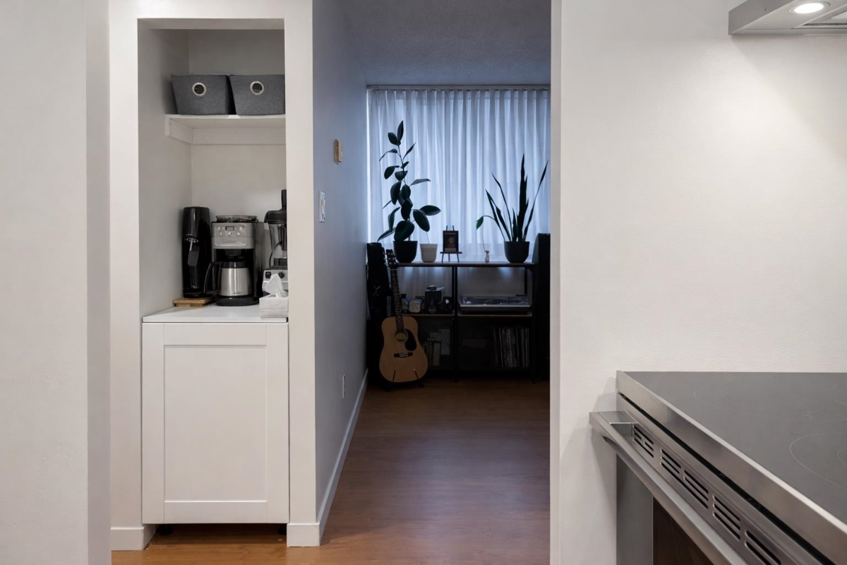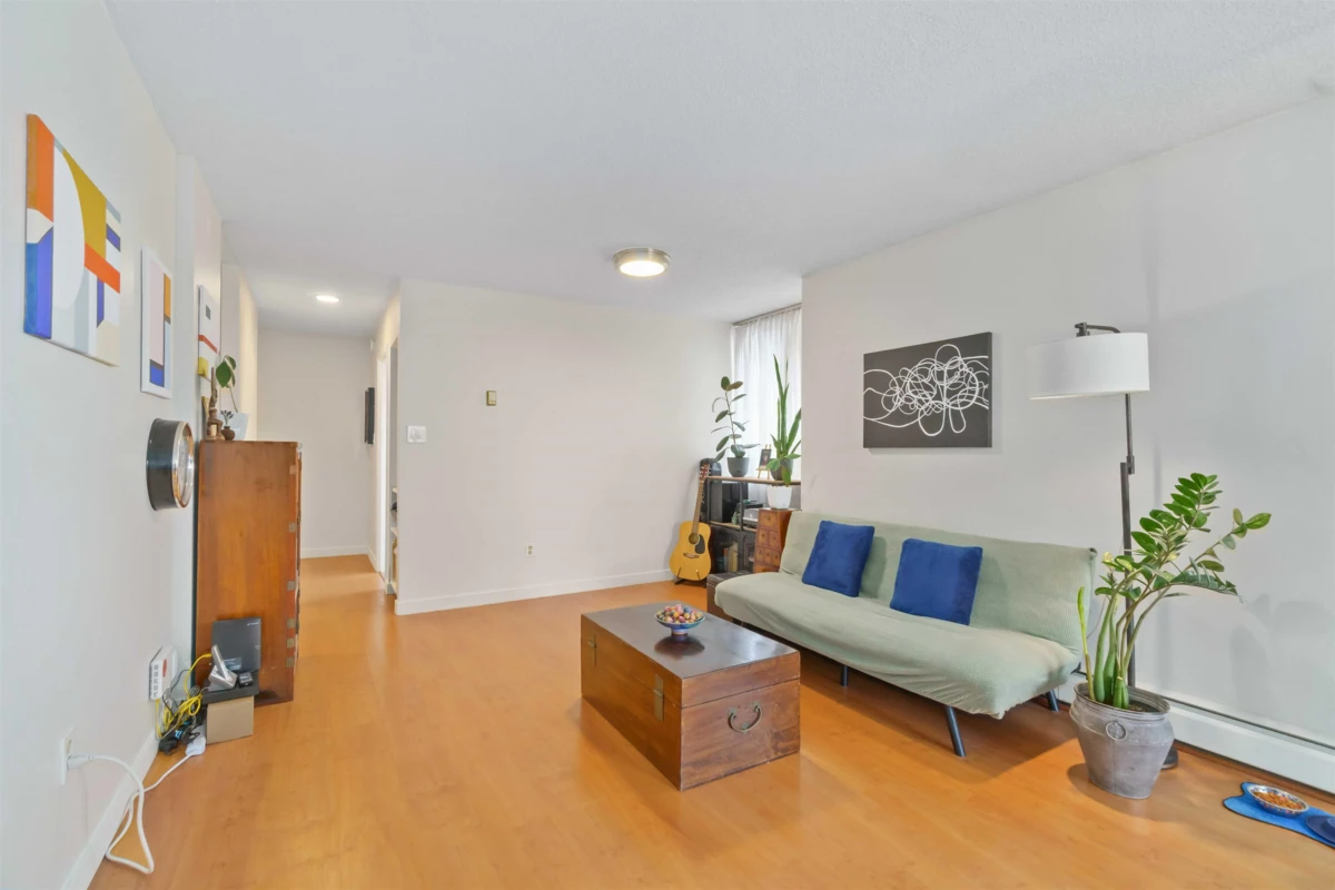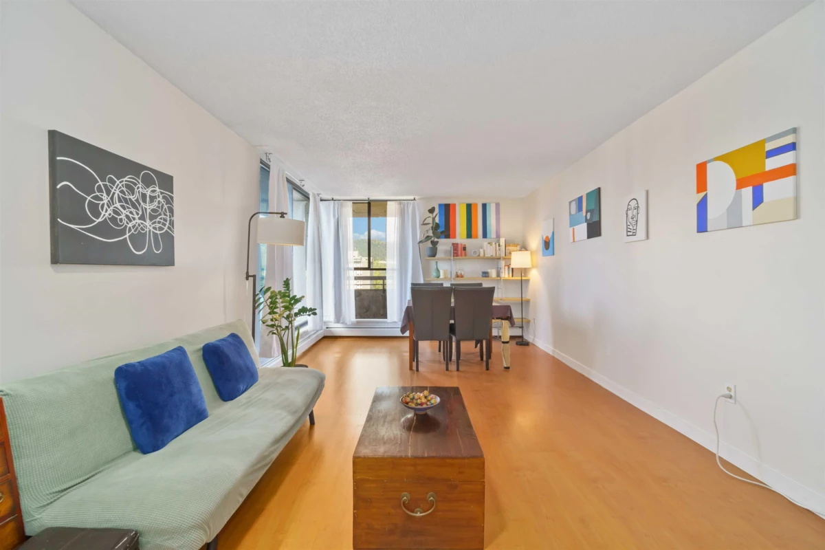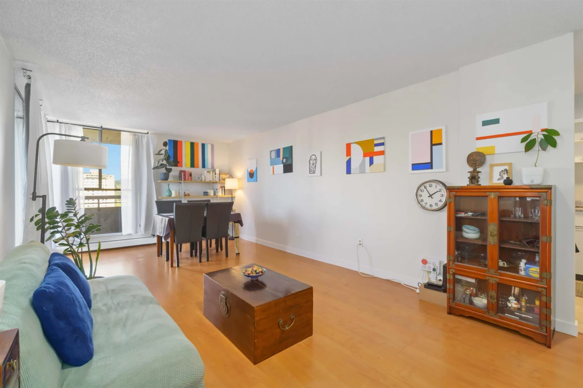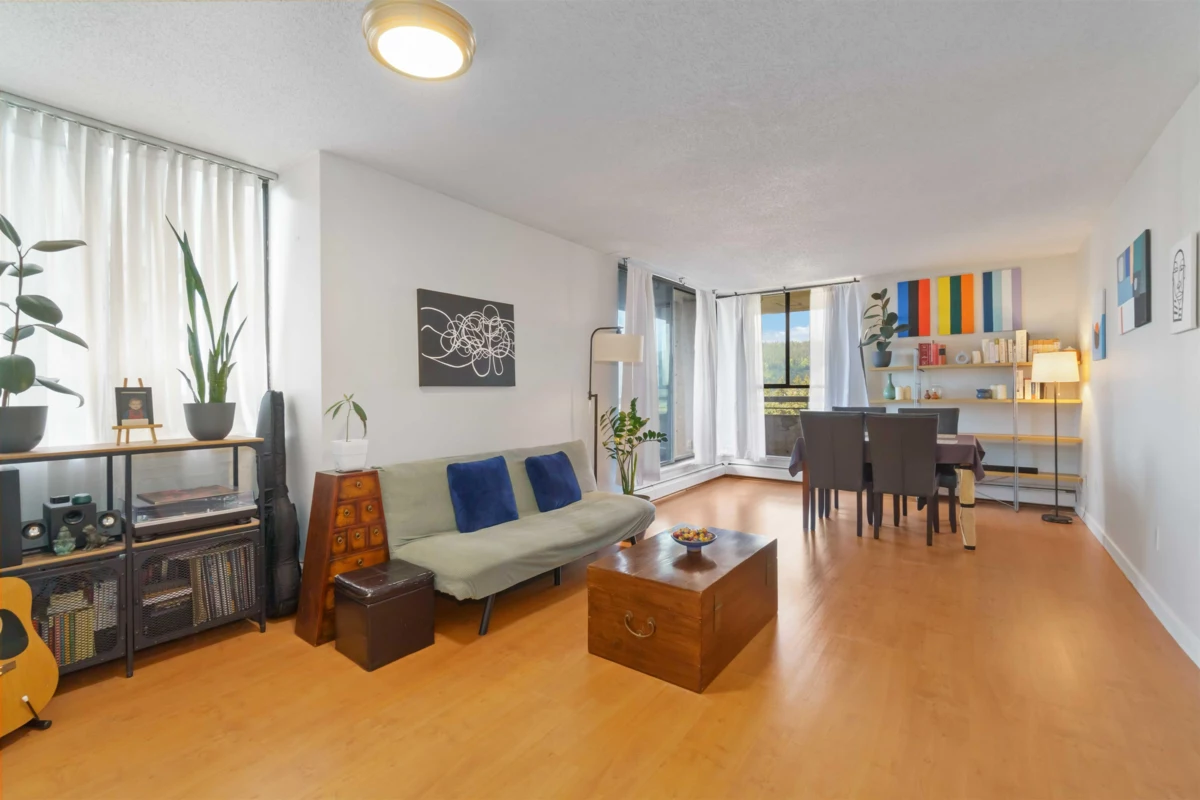 Bright and spacious 1 bedroom, 1 bath corner unit in Timberlea, move-in ready and easy to show (tenant related to owner, move in ASAP), featuring a covered wraparound balcony with north and west city and mountain views. This well-designed home offers a combined living and dining area with laminate flooring and large windows for excellent natural light, a generously sized bedroom, and an updated kitchen with fresh cabinetry, modern countertops, and newer appliances providing great storage and prep space. Enjoy excellent amenities including an indoor pool, lounge, fitness centre, games room with pool table and ping pong, and a workshop. Conveniently located near Lougheed Mall and SkyTrain. Heat, hot water, and electricity included, plus 1 parking stall and 1 storage locker.