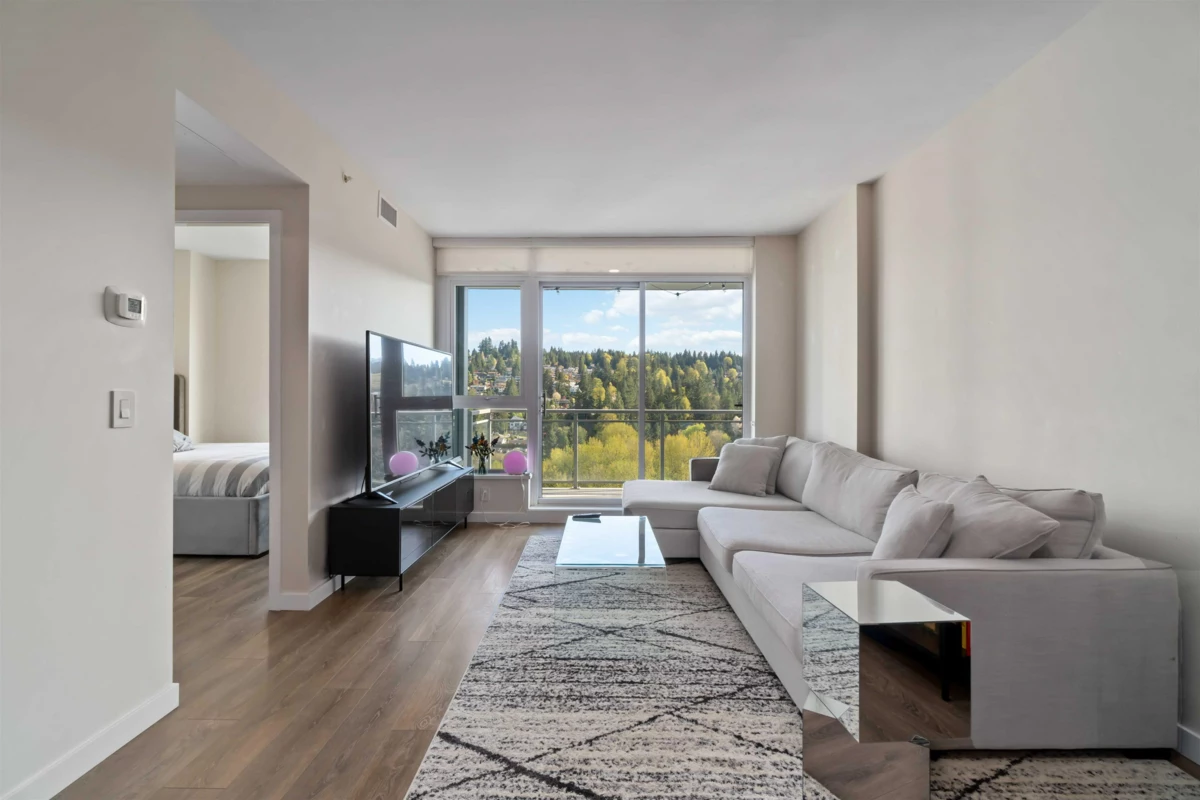 Ascend to the 20th floor of The Grande at Suter Brook Village and discover a haven of sophistication! This meticulously designed 1-bedroom condo, just 2 years young, epitomizes modern elegance in Port Moody. Nestled in the prestigious West Tower by ONNI, enjoy in-suite laundry, a gourmet kitchen with sleek marble countertops and a versatile breakfast bar. Storage solutions abound with a built-in pantry and custom cabinetry. Indulge in the spa-like bathroom with premium marble tile flooring and a deep soaker tub. Expansive windows frame breathtaking views. Access amenities like a sauna, steam room, kids playroom, outdoor pool and hot tub, movie theater, boardroom, meeting room, party room, outdoor kitchen and BBQ area and a playground. Experience unparalleled refinement at The Grande.