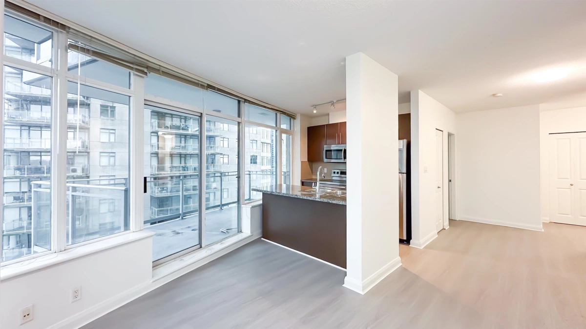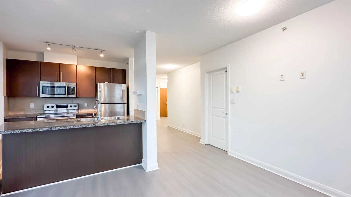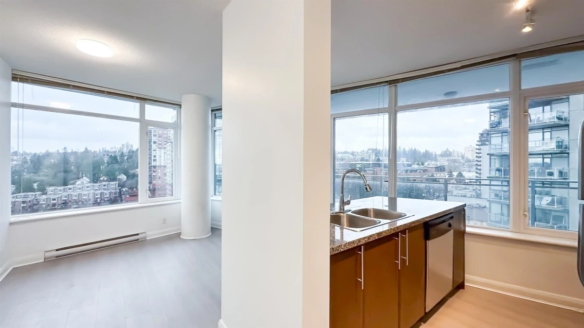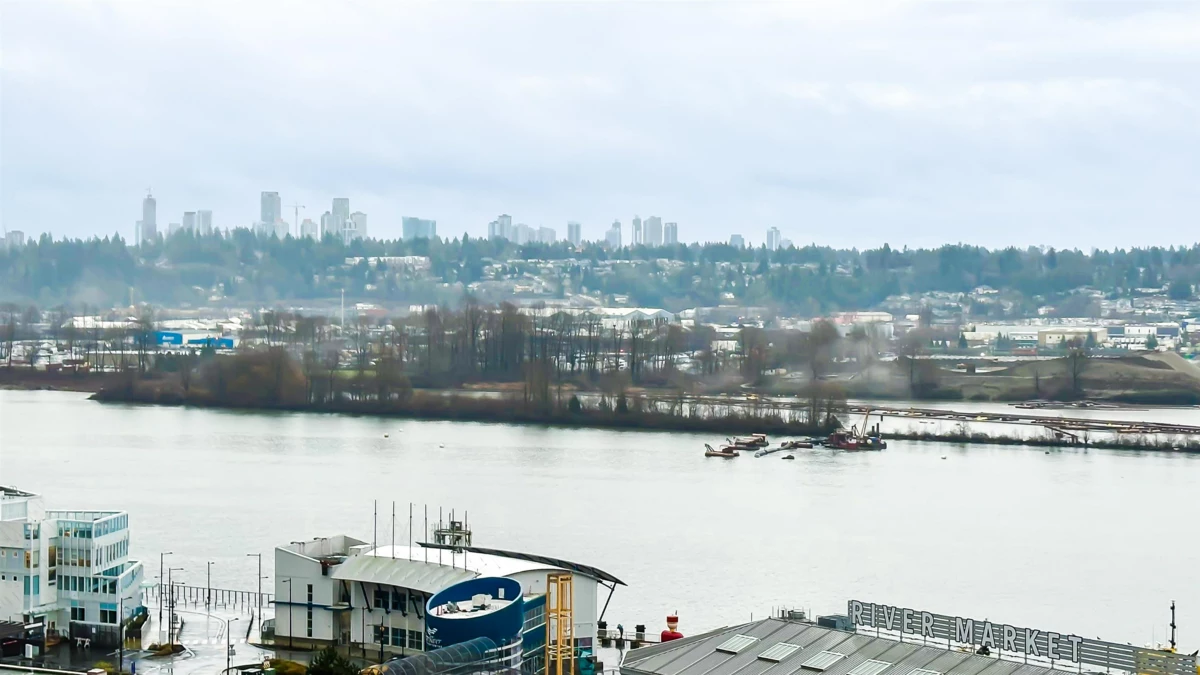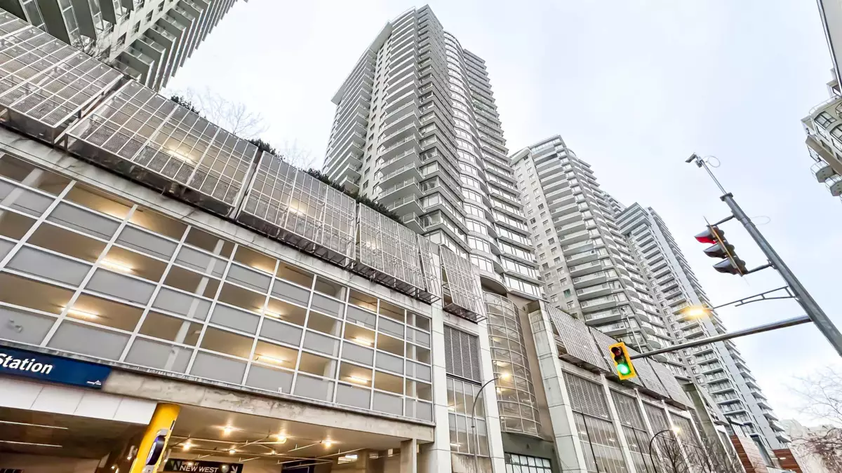 Welcone to AZURE 2. Experience the ultimate in urban convenience with this fully updated 2-bedroom, 2-bathroom home. Boasting a large balcony with stunning water views, this property is move-in ready and perfectly positioned for commuters and investors. Brand new laminate flooring, paint, and modern lighting throughout (all new in 2026). Fireplace professionally removed with strata approval to maximize floor space. Direct access from the building to New Westminster SkyTrain Station, Safeway, banks, cinema, and the bus terminus -completely rain-free. 5 minutes stroll to Douglas College, the Quayside boardwalk, and Columbia Square Mall. Amenities include 1 secure parking stall, 1 storage locker, and access to a fully equipped gym. Turn-key living in New Westminster's most connected hub!