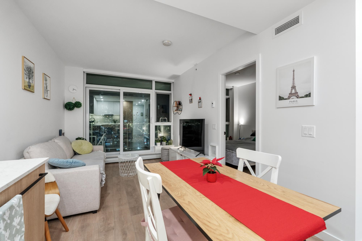 Welcome to Georgetown by Anthem! This immaculate, bright south-facing home features 1 bed, 1 bath, 1 parking, and 1 locker. Enjoy an open-concept living and kitchen area with quartz countertops, integrated stainless steel appliances, and laminate flooring throughout. Georgetown offers over 30,000 sq ft of amenities including an entertainment lounge, co-workspace, outdoor theatre, dog run, fitness centre, and guest suite. Steps to Surrey City Centre shopping and dining, with SkyTrain, KPU, SFU, and the upcoming UBC campus just a short walk away. Don’t miss out!