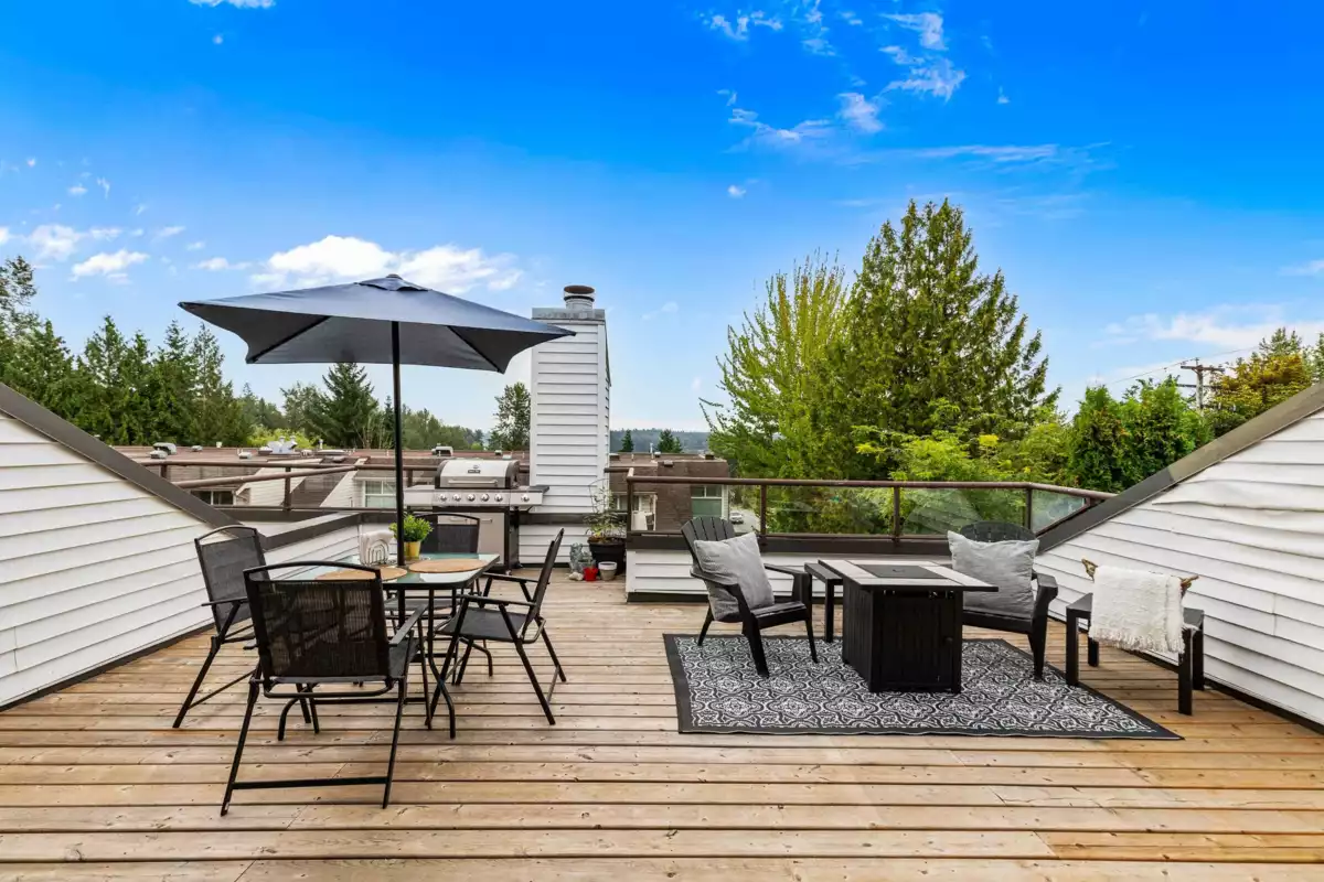 Unique one-level townhome that offers 2 bed & 1.5 bath in great location with a slight view of the Fraser River. Cozy and functional layout with 2 patios that expands your living space greatly. Primary bedroom features a sliding door to the back deck, plus a 2nd patio off the other bedroom for added outdoor access. Open-concept living/dining area with a fireplace adds warmth & flexibility. Covered sundeck of 200+ sqft plus 300 sqft of open space—perfect for relaxing or entertaining. Enjoy a large outdoor private deck—your own oasis to make, overlooking trees & river glimpses. 2 storage spaces as well. A great choice for first-time buyers or those looking to downsize into a well-situated, established complex close to shopping, transit, and services.