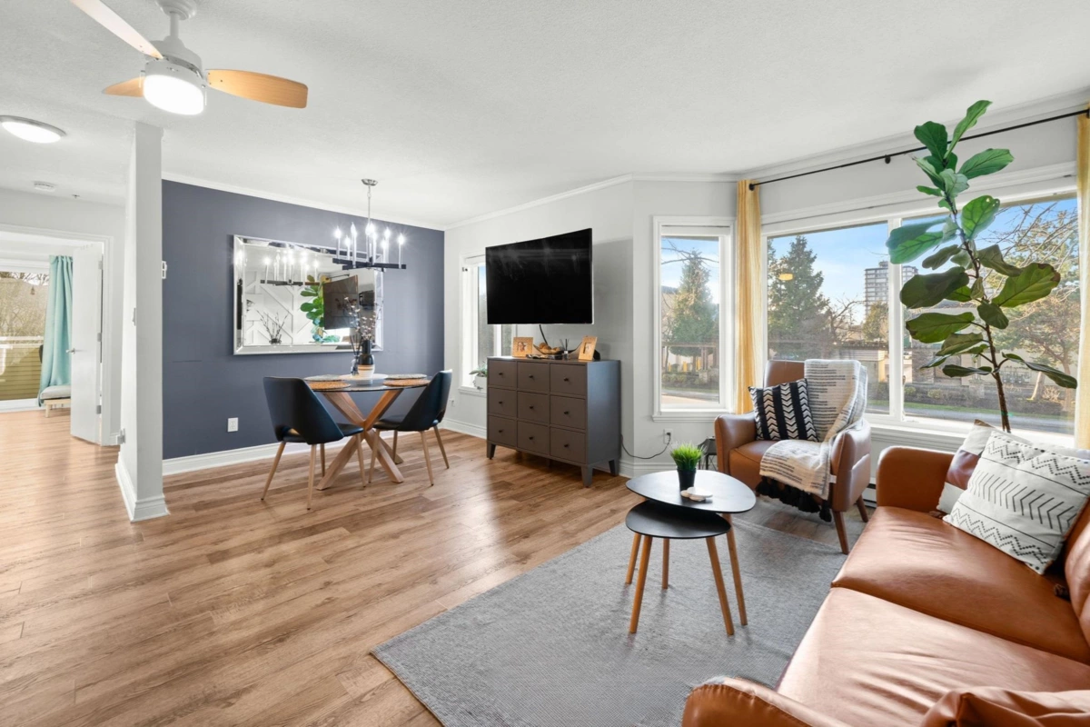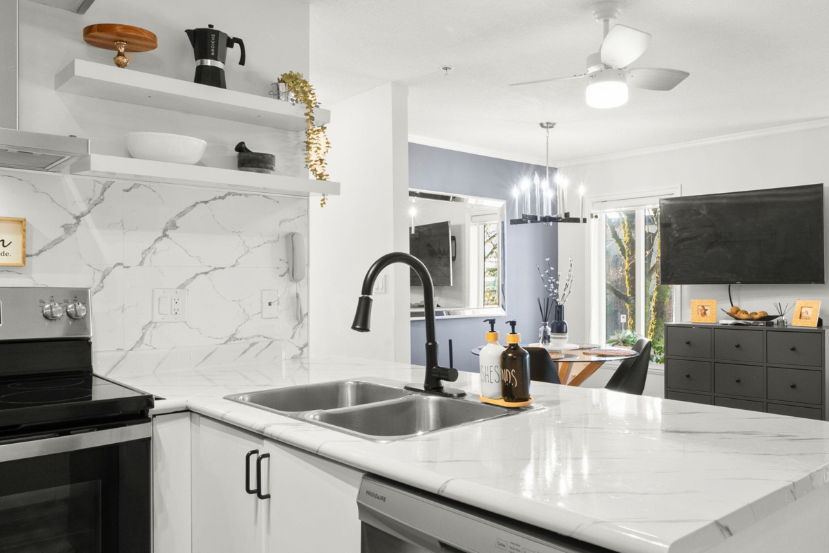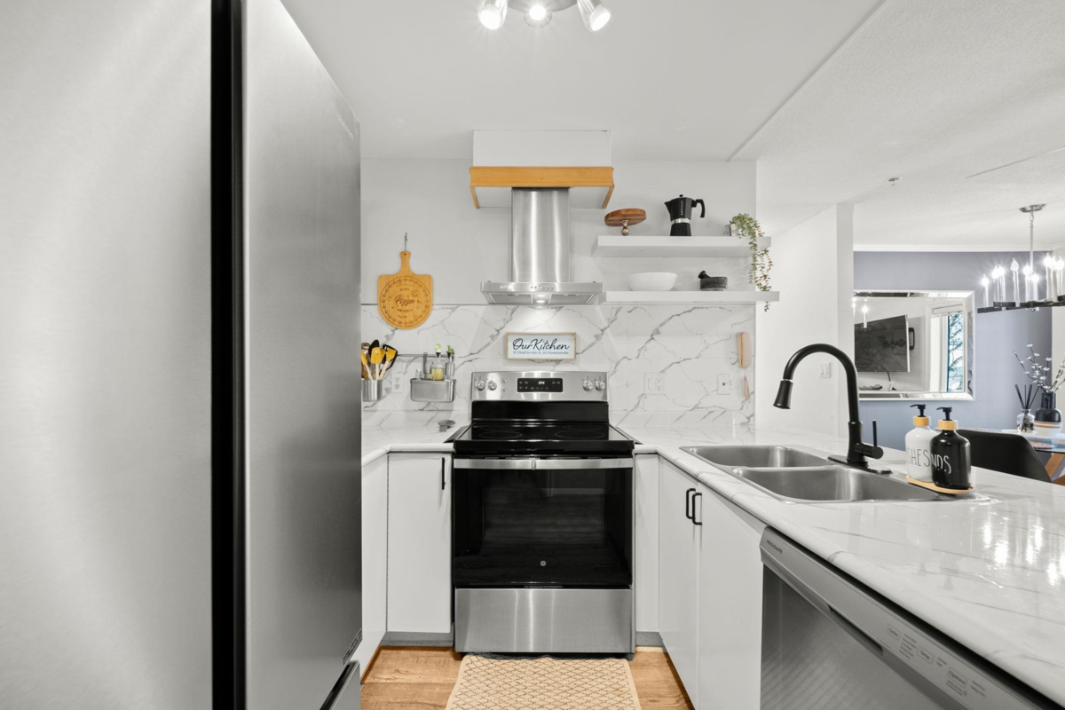 Welcome to the centrally located & well-maintained La Costa Green community! This tastefully updated, bright end/corner unit offers excellent convenience with Superstore, Fruiticana, Tim Hortons & The Keg all within walking distance. Bonus: bus stop 1 block away with direct access to Scott Rd SkyTrain in 5–10 minutes. Features include a spacious living room, a generous dining area with large windows, and an open-concept kitchen. Long foyer provides a convenient space to sit and remove shoes. Quiet corner location backing onto the courtyard with a good-sized patio off the 12’ x 11’ primary bedroom. Don’t miss this well located, move in ready home