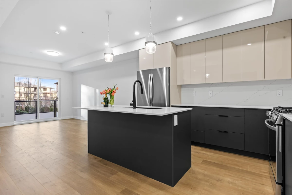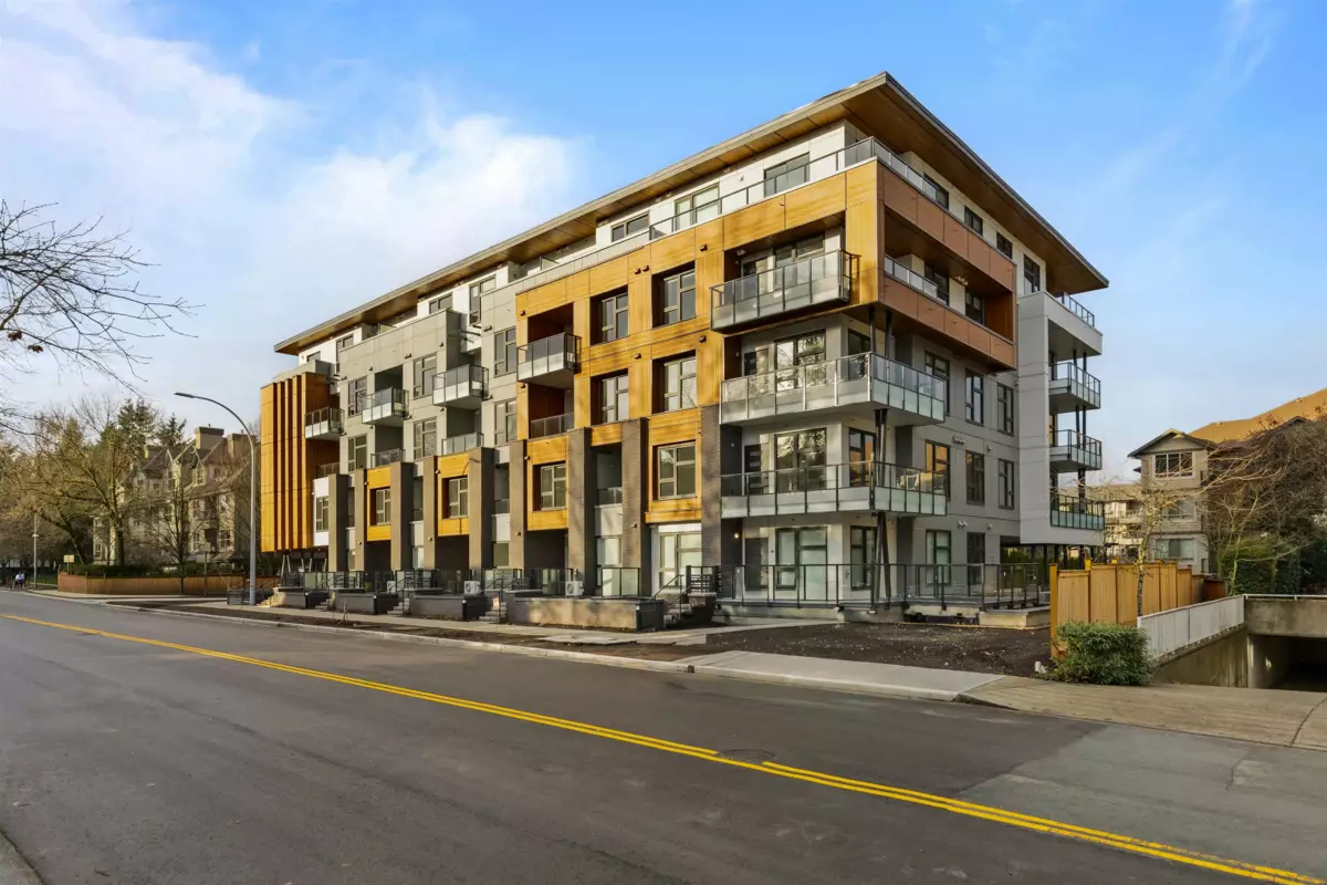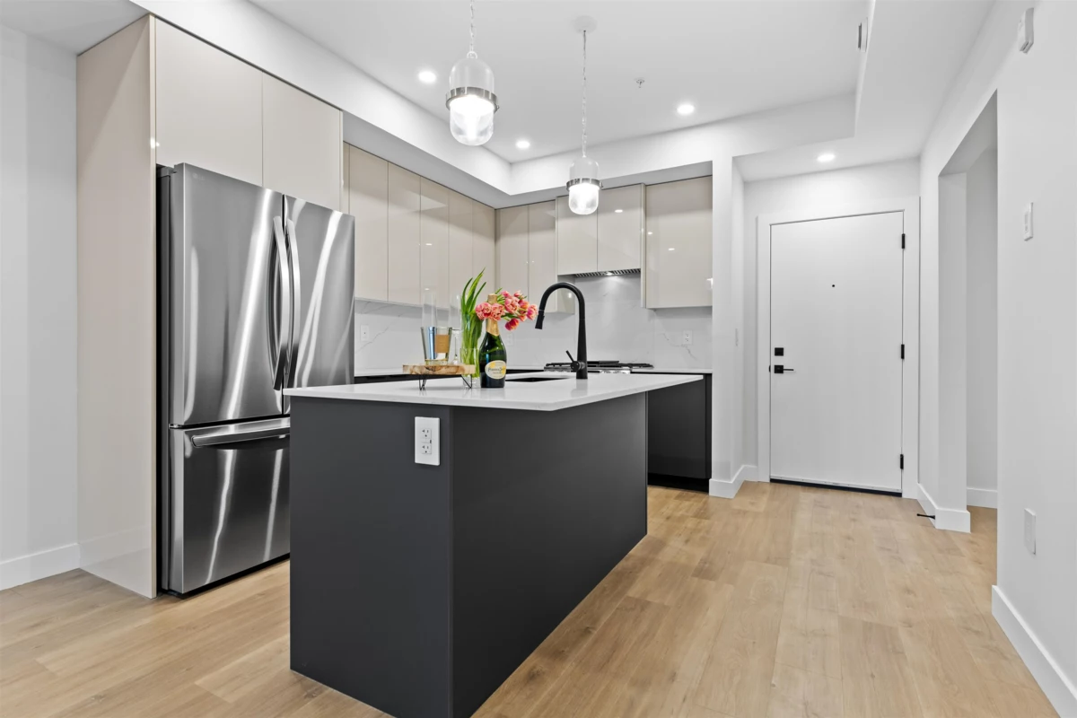 An exclusive opportunity to be the first to own at HALVO, a boutique new residence in South Surrey, bordering White Rock. This thoughtfully designed 1-bed + den showcases an entertainer's kitchen with a 1 generous island, quartz countertops, gas range, and stainless steel appliances. The bright, open layout is complemented by a spacious bedroom and a versatile den ideal for a home office, guest space, or small dining area. Enjoy panoramic rooftop amenities with stunning mountain views, BBQ area, putting green, clubhouse, fitness centre, and an outdoor children's play area. Includes 1 parking with rough-in Ev Charge and 1 storage. Just minutes to White Rock Beach, parks, shopping, hospital, and transit. A rare opportunity to secure the first resale in this highly desirable coastal community