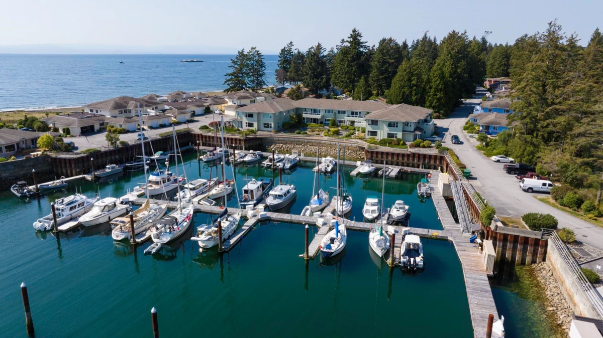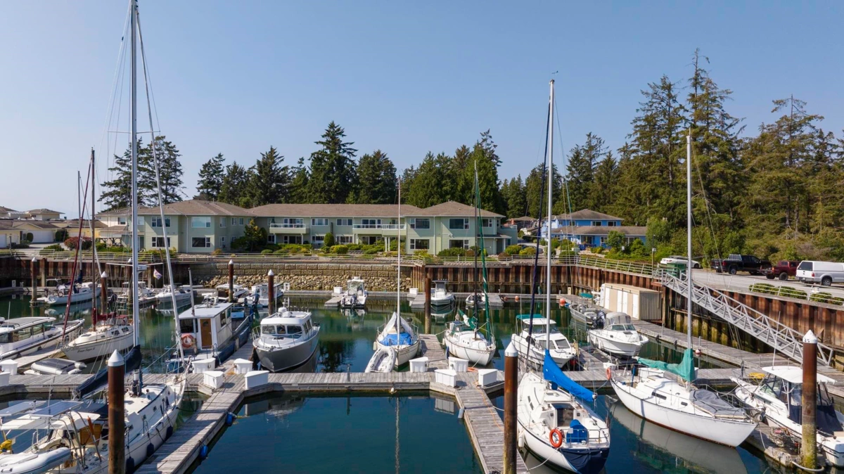 Stunning views with a spacious floor plan. Welcome to Port Stalashen, Sechelt's premier seaside development. Nearly 1500 square feet on 1 level with stunning South views of the marina, shoreline, and the Salish Sea. The unit is 1 level, open and spacious with a large living and dining area facing the marina and the lovely shoreline across the bay. A painter could find inspiration every day from the ever changing views. This unit is ideal for a person with mobility issues; easy accessible at all times.