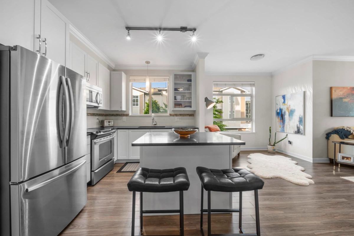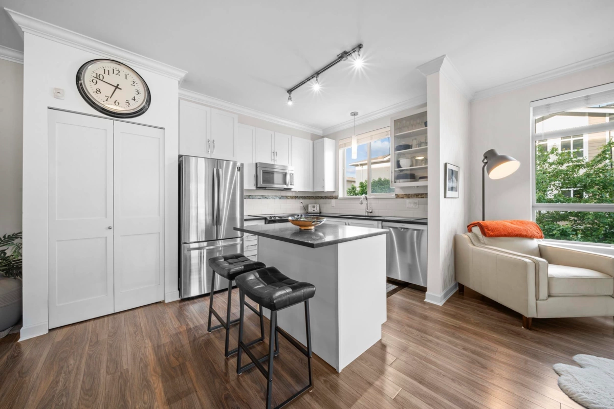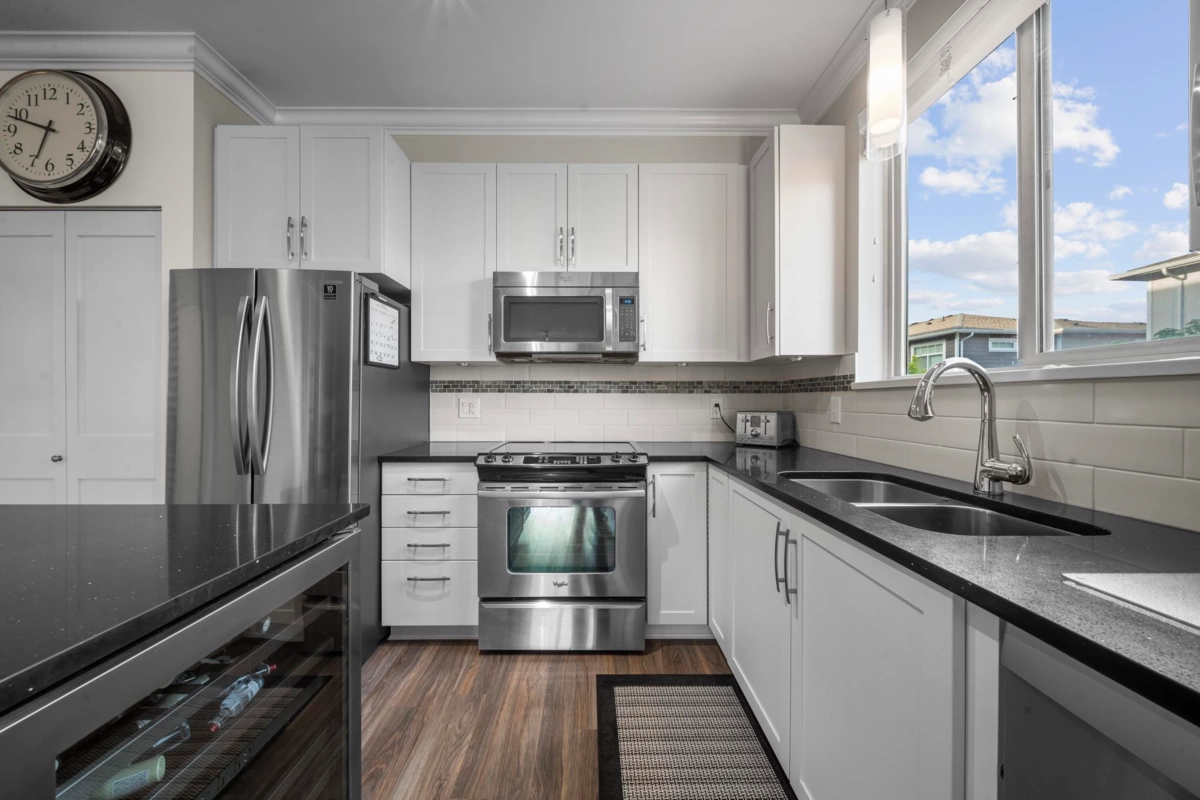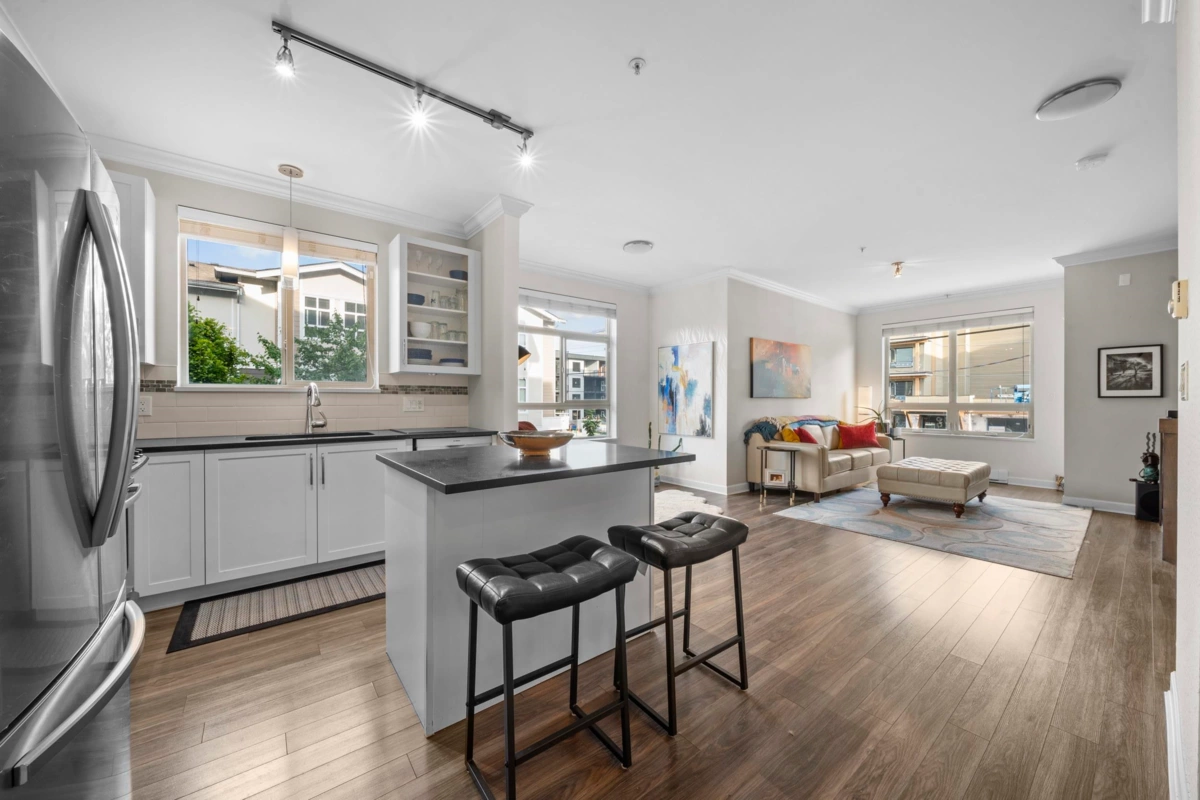 CENTRAL LOCATION | 1 BED / 1 BATH | 774 SQ/FT | Located in Willoughby's desirable Athenry Gate, this corner unit embodies modern living at its finest, providing spaciousness, elegance & convenience all in one package! With 9' ceilings & expansive windows, natural light floods this unit enhancing the overall charm & comfort. A beautiful kitchen w S/S appliances, Quartz countertop & hardwood style laminate throughout. A private & cozy balcony is the perfect place for you to unwind & enjoy your morning coffee w/ the sunrise. Nestled in the heart of Willoughby, you won't have to go far living here. Only minutes away from Highway 1 & Carvolth Park + Ride w/ express bus to skytrain & surrounded by shops, restaurants, offices, amenities & more!