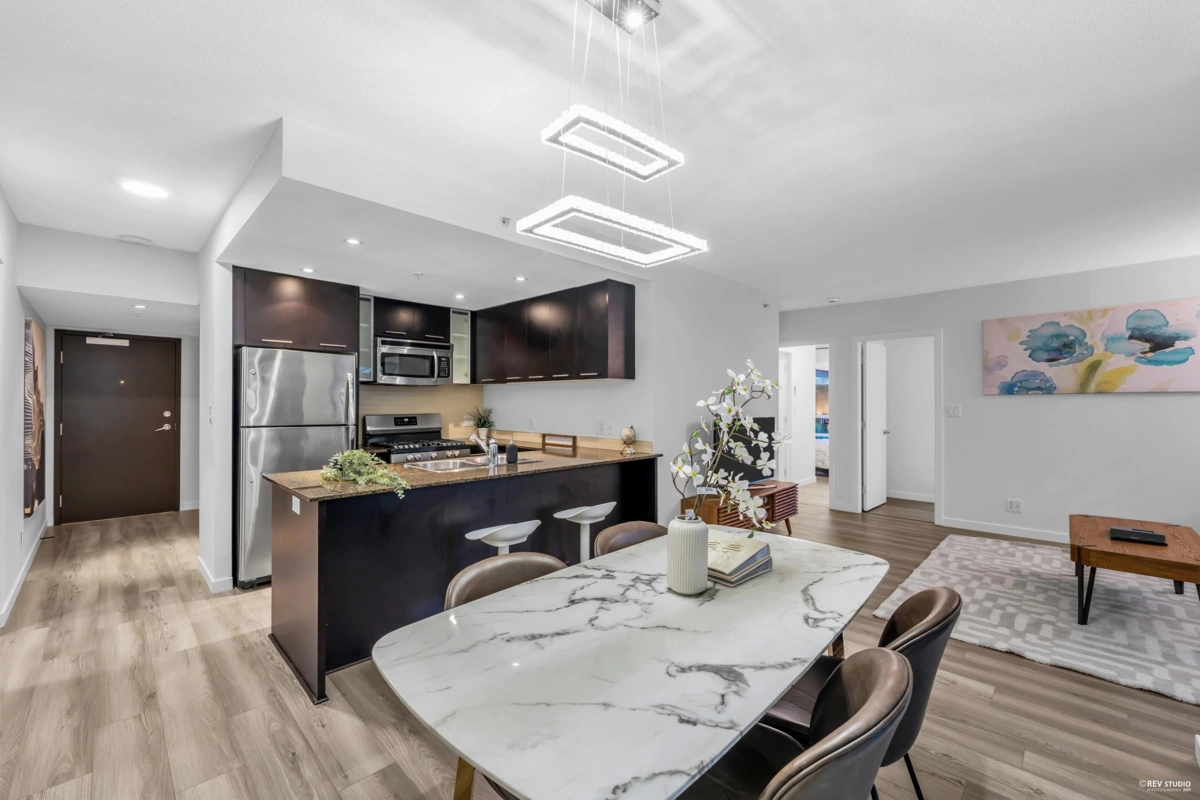 This bright and spacious home is quietly positioned on the prestigious Wall Centre in Richmond. The functional open-concept layout is enhanced by floor-to-ceiling windows that fill the space with natural light. In 2025, the unit received a refresh with new flooring throughout, new blinds, a new dishwasher, updated lighting, and fresh paint, giving the home a clean and modern feel. Additional features include granite countertops, stainless steel appliances, a gas cooktop, and in-suite laundry. Residents may also enjoy access to the Westin Hotel’s pool, hot tub, and gym for a low monthly fee. Ideally located, the building sits just steps from the Capstan SkyTrain Station, Yaohan Centre, Aberdeen, Lansdowne and Richmond Centre. 1 parking included. Open House Jan 3 (Sat) 2-4pm.