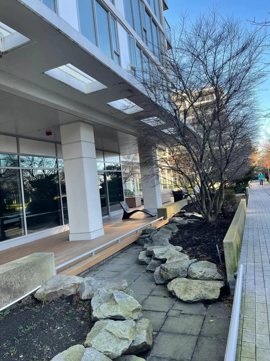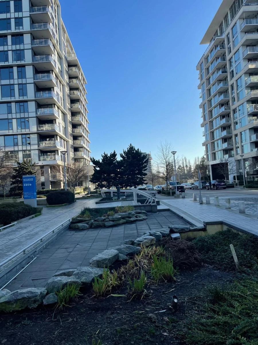 End Unit, concrete townhome, built by world class Concord Pacific with thoughtful design & quality workmanship. Walk up to your private entry w/large patio set back from the street. This private unit is beautifully appointed with high vaulted ceilings, large windows filling this home with natural light, and a fully equipped luxury kitchen with high end Bosch appliances & gas range. A/C, custom shelving, & auto lighting. Easy internal access to your EV parking spot. Concierge + resort inspired DIAMOND CLUB: fitness centre, pool & spa/sauna/steam, gym (badminton, basketball, climbing wall), yoga studio, golf simulator, theatre, banquet hall, bowling alley, and more! Grounds feature a 7000 sf park. Walking distance to shopping, transit, and schools. Luxury in the heart of Richmond.