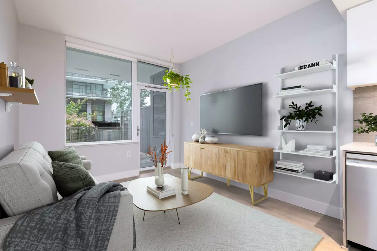 This is the perfect home for a First Time Homebuyer seeking Big Deck Energy! Behold, this 1 Bed, 1 Bath & Den boasts a 386 sqft Patio Plus 2 Storage lockers. With a total combined indoor/outdoor living space of 986 sqft, outdoor lovers rejoice, your home is here. Ready for you to move in, includes fresh paint, new Dishwasher and new Oven. Creature comforts include Heat Pump cooling to keep you cool in the summer and 14k sqft. Amenities center to keep you entertained all year round. Enjoy the indoor pool, Hot tub, steam room, sauna, gym, squash courts, basketball court and party rooms at Club Central. Good food, grocery and necessities all within steps. This home will only add to your lifestyle!