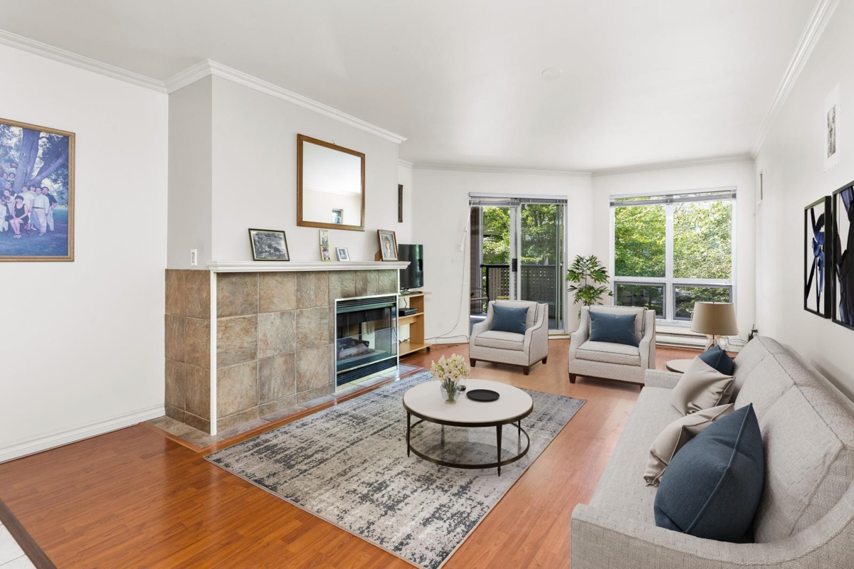 You can renovate but you can almost never add square footage! This is a rare find in Richmond. A HUGE 1-bedroom unit of 960 sq ft in a FULLY RAINSCREENED building. Quietly located well away from any roads, the unit has large rectangular rooms that will accommodate large furniture. Well kept and awaiting your ideas but also move-in ready. Abundant in-suite storage and closet space, full-size laundry, gas fireplace, balcony. Comes with one parking stall. Located just minutes away by foot to recreation, shopping, restaurants, transit and so much more!