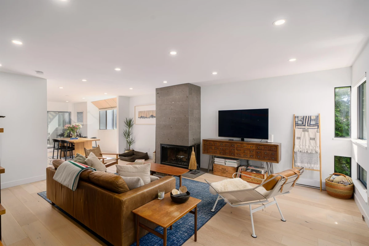 Welcome to this beautifully renovated 3-bedroom, 3.5-bath end-unit townhome that perfectly blends style, comfort, and convenience. With thoughtful upgrades throughout—including engineered hardwood, Fisher & Paykel appliances, stone countertops, A/C with heat pump, and radiant heated bathroom floors—every detail feels just right. The open-concept main level is bright and inviting, flowing seamlessly from the modern kitchen to a spacious living area anchored by a cozy wood-burning fireplace. Upstairs, the primary retreat features mountain views and a spa-inspired ensuite with a deep soaker tub, plus a second bedroom and full bath. Downstairs, a private third bedroom with its own ensuite is ideal for guests or in-laws. Carport has extra storage for all of your gear!