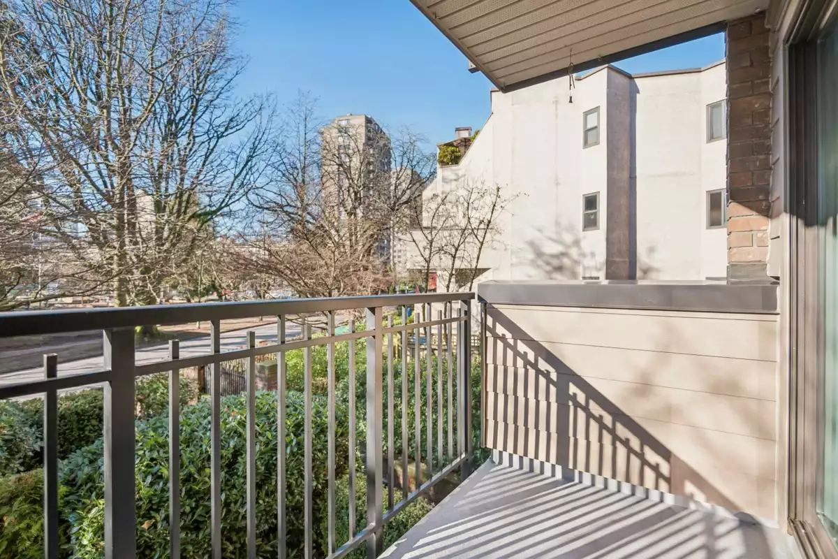 Beautifully renovated and oversized 2-bedroom, 2-bath home on a quiet, tree-lined street heart of the West End. The updated kitchen offers granite countertops, stainless steel appliances, and abundant custom cabinetry, bright open spacious living and dining area highlighted by a cozy wood-burning fireplace. Enjoy two full spa-like bathrooms and two generously sized bedrooms, plus the convenience of in-suite laundry & elevator. 1 secure parking, two storage lockers, and visitor parking. Located in one of the best-maintained buildings in the West End, extensively upgraded with Hardie-Plank siding, windows and doors, garage membrane, balconies, plumbing, boiler, roof, elevator, and refreshed lobby and hallways. Full rainscreen, Huge CRF! walkable location, infront of a park, robson etc.