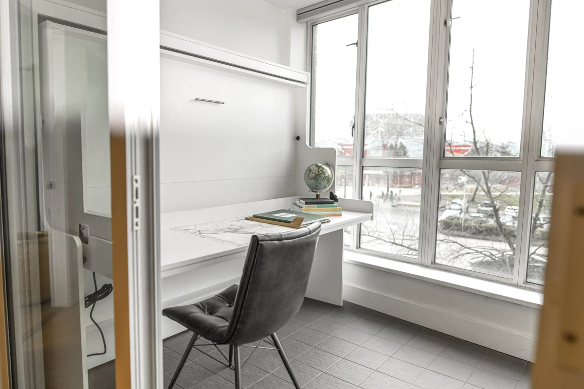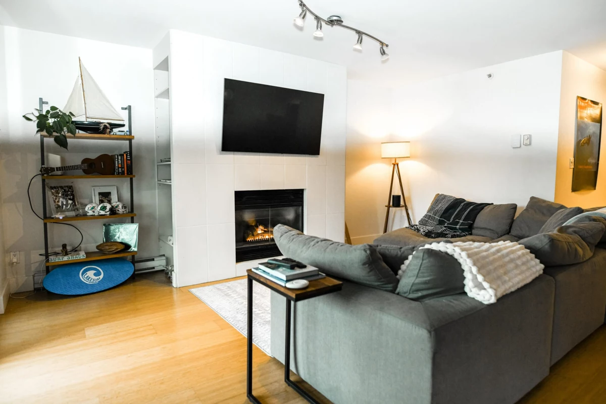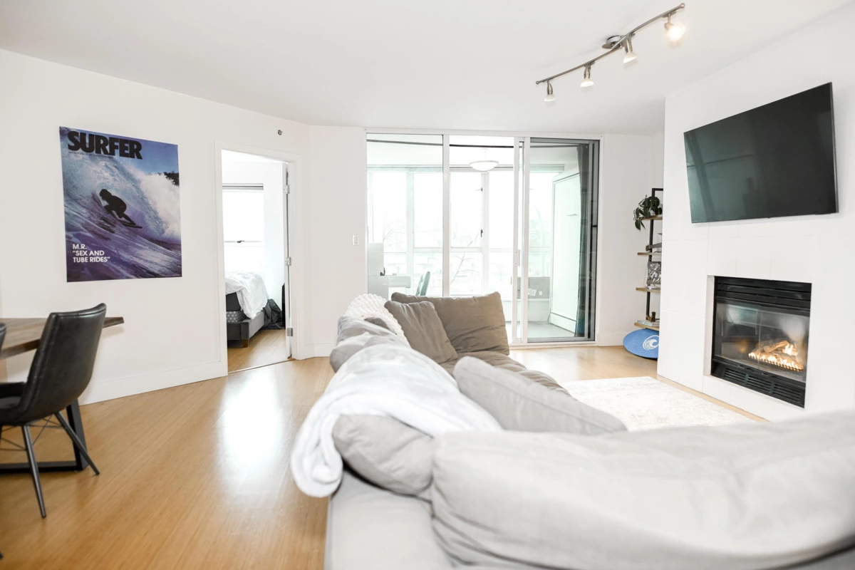 Presenting a tastefully updated and exceptionally spacious 2 bed, 2 bath plus den home in the solid Bosa-built concrete City Gate development. Offering over 1,300 sq ft of comfortable, highly liveable space with floor-to-ceiling windows, high-quality stainless steel appliances, and an open layout anchored by a gas fireplace. The versatile den features a built-in desk and two Murphy beds, ideal for guests or a dedicated home office. The home can comfortably accommodate 8 people with the guest beds. The generous ensuite includes a double vanity, soaker tub, and separate shower. Enjoy excellent amenities including an indoor pool, gym, hot tub, games room, and landscaped courtyard. Steps to SkyTrain, Seawall, Olympic Village, downtown, and Mount Pleasant’s vibrant dining and social scene.