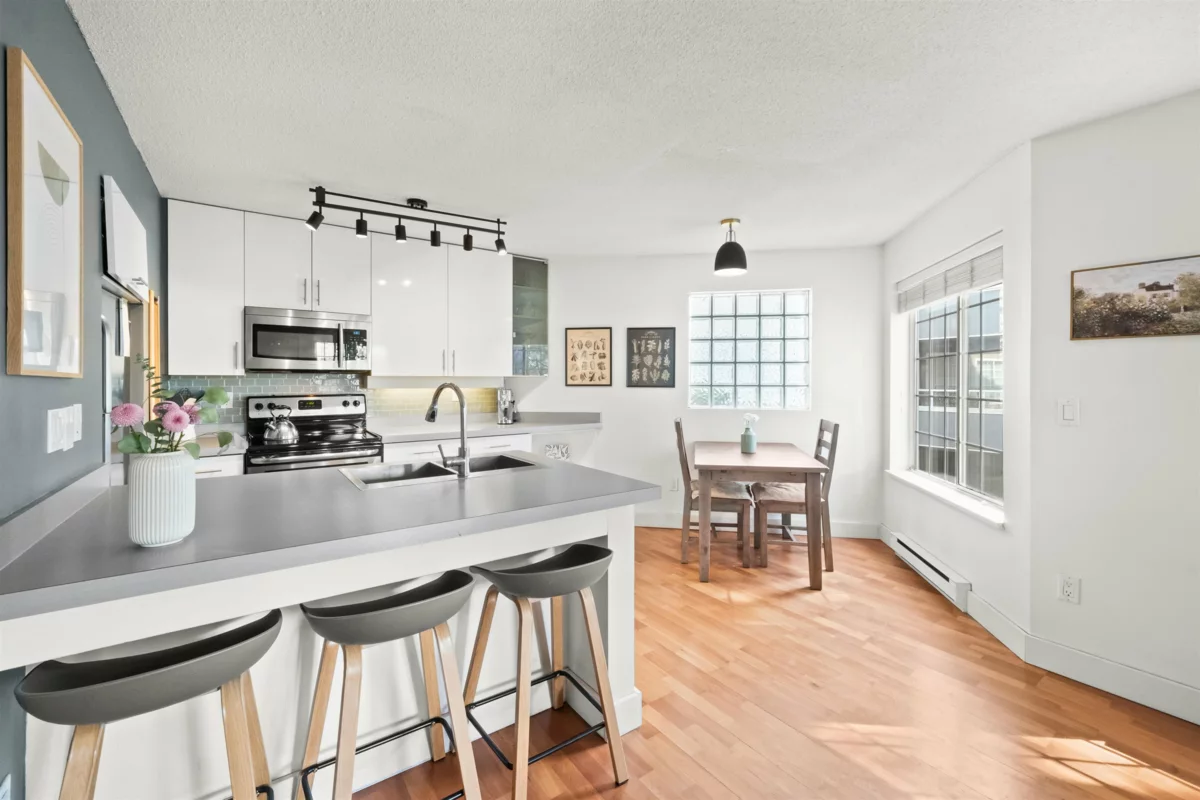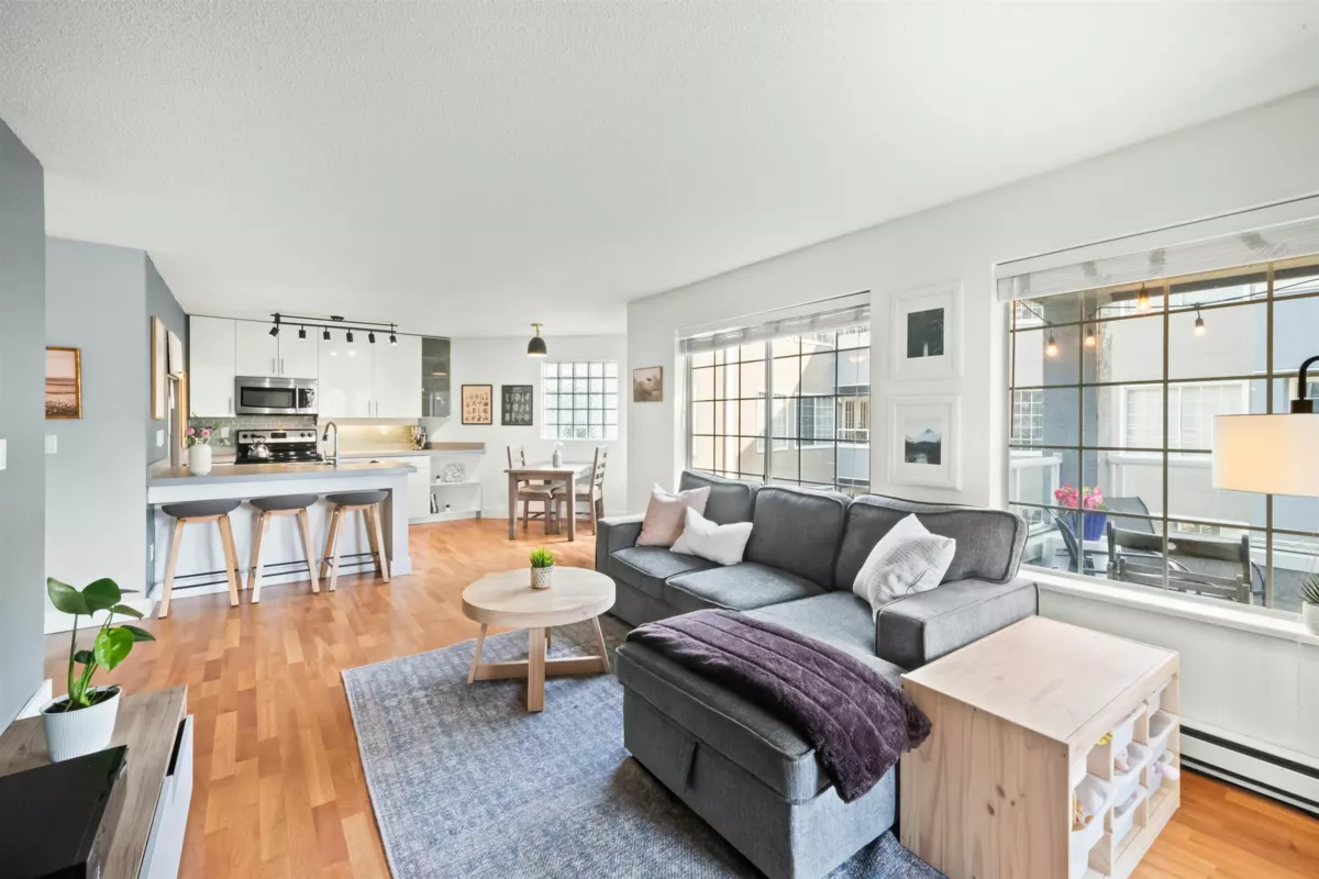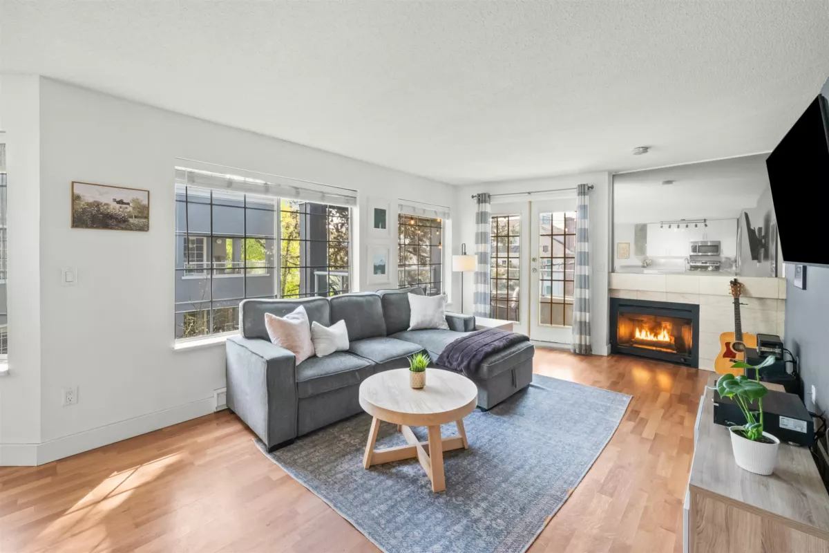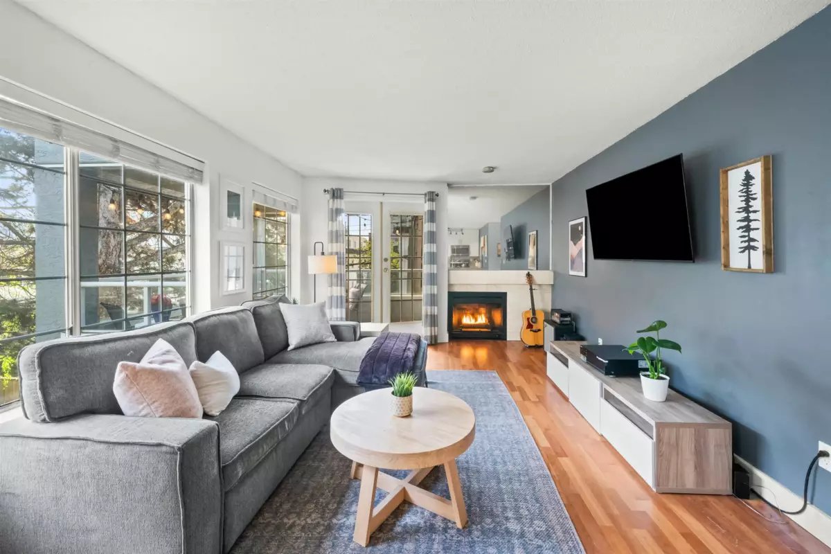 Bright and spacious, this corner unit at Ashton Place is a perfect sanctuary just half a block off Lonsdale Avenue. This south-facing home has been beautifully updated and is ready for you to move right in. The thoughtful floor plan features a defined entryway and an open-concept kitchen that flows seamlessly into the living space. The main living area boasts more windows than any condo has a right to have, which flood the home with natural light, while a cozy gas fireplace sets the tone for relaxed nights at home. The 100-sqft balcony is perfect for morning coffee or evening unwinding. The large primary bedroom features a bay window, walk-in closet, and an updated semi-ensuite. Ashton Place is well maintained with recent upgrades to the roof, boiler, piping, and common areas.
