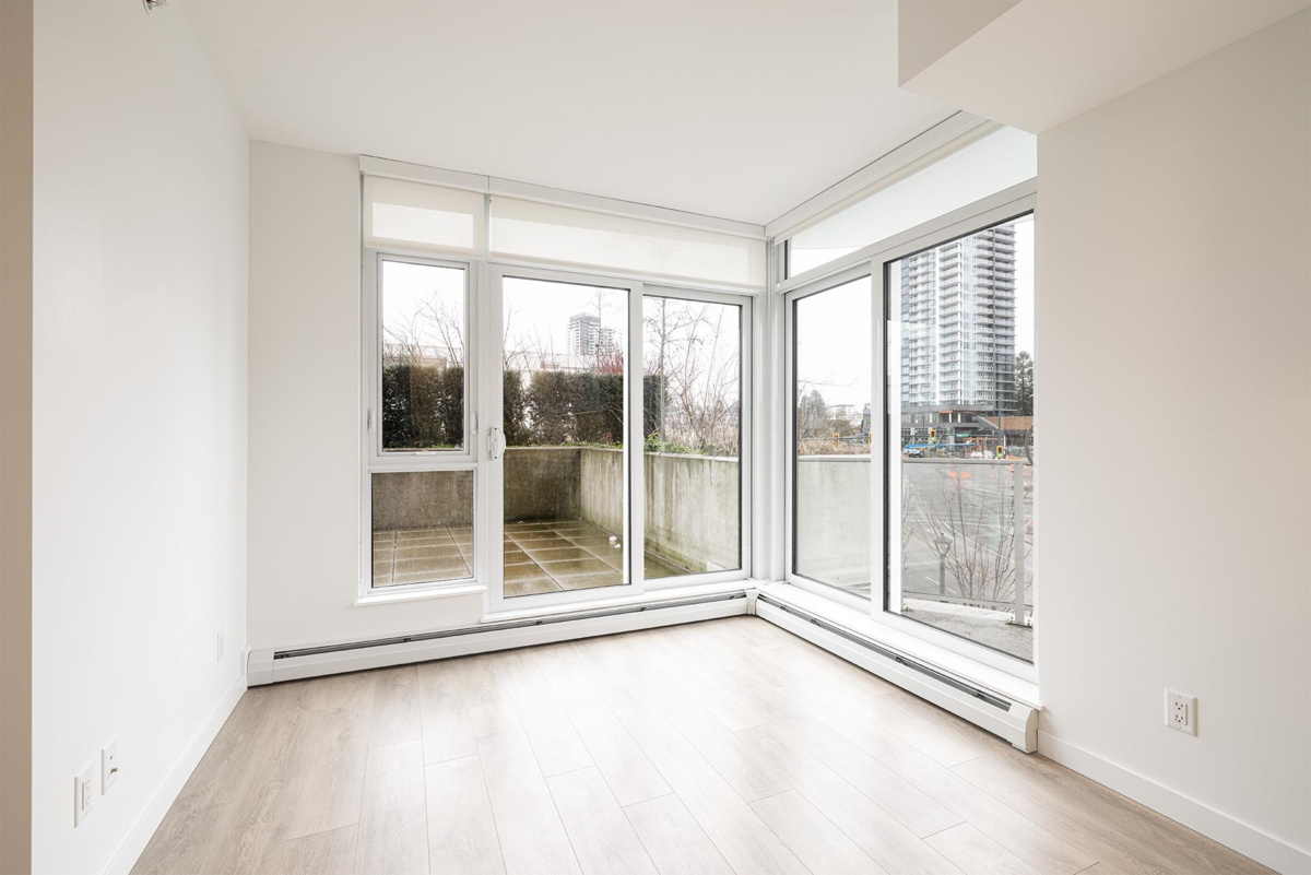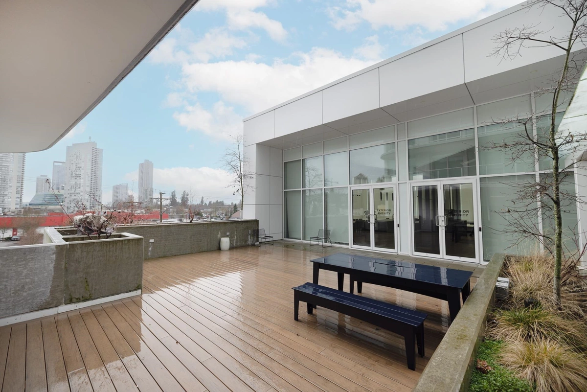 PRIME LOCATION! Welcome to Georgetown One by Anthem Properties. This move-in-ready 2-bedroom, 2-bathroom residence is truly one of a kind, the only home in the building to offer both a balcony and a private patio, creating an exceptional indoor-outdoor living experience. Thoughtfully designed for privacy, the entrance is set away from the elevator. Enjoy contemporary finishes, stainless steel appliances, laminate flooring, and quartz countertops. Over 30,000 sq ft of amenities include a gym, guest suite, co-work and study spaces, yoga studio, outdoor theatre, lounge, green spaces, and dog run. Steps to SkyTrain, transit, Surrey Central, SFU, KPU, future UBC campus, T&T, City Hall, library, dining, and more. 1 Parking & 1 storage included
