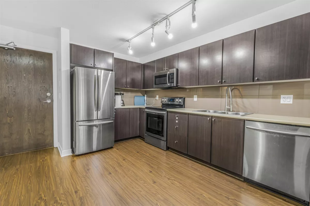 Welcome to this stunning second-floor condo in the MIRA complex, featuring two bedrooms and one bathroom. With a clean, open concept design and spacious rooms, this residence offers both comfort and style. Ideally located, it provides easy access to shopping, restaurants, grocery stores, recreational facilities, schools, and public transit. The unit is highlighted by designer finishes, elegant wood laminate floors, and plush carpeting, along with a private balcony or patio overlooking the beautifully landscaped central courtyard. Additional amenities include in-suite laundry, storage locker, secure underground parking, and access to an exercise room and recreational area, making it perfect for those who value convenience and lifestyle. Walking distance to both level schools.