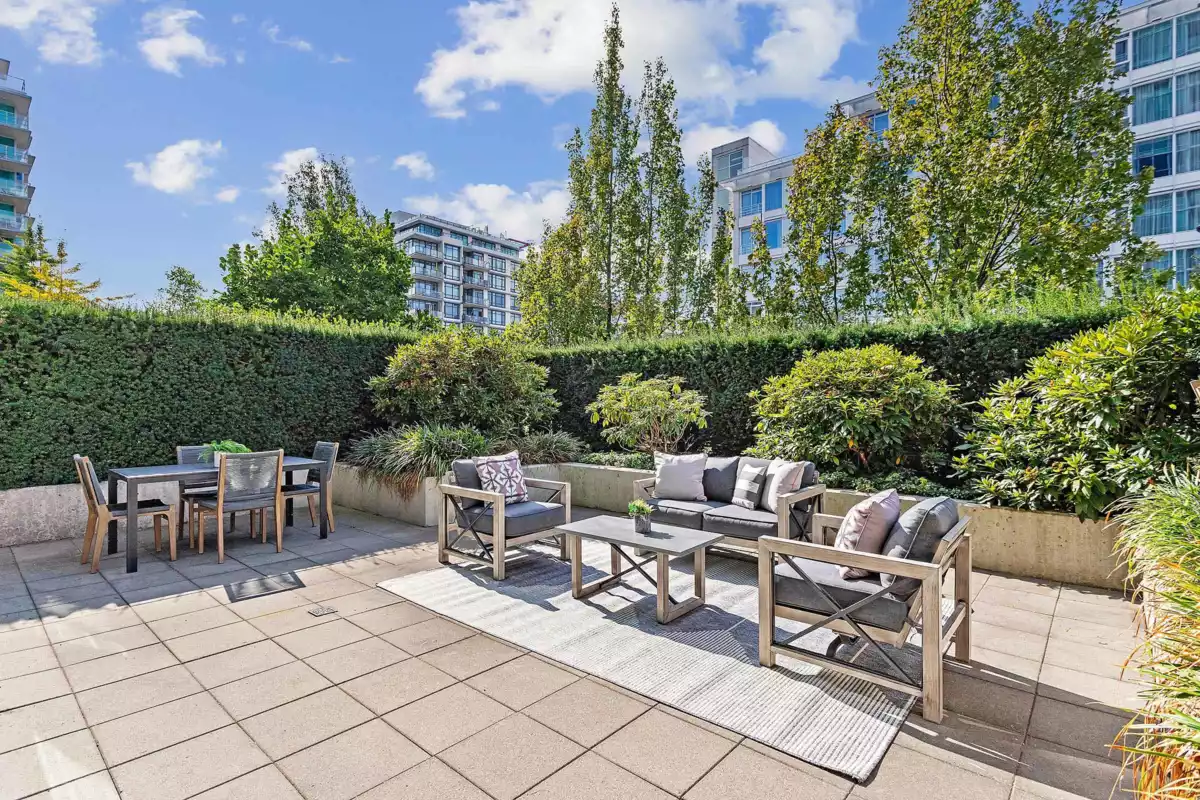 HUGE SUN-SOAKED PATIO & GARDEN. Spectacular 515 sq. ft. patio makes this condo unique. Located in the exciting & vibrant area of Lower Lonsdale & all it has to offer. Brazilian cherry wood flooring in main rooms enhances fabulous indoor/outdoor entertaining space of this 2 bedroom & den home. Open plan with separated bedrooms. Gas fireplace, Air conditioning, In-suite laundry. Kitchen-granite counters, gas stove & SS appliances. Premiere has access to Pinnacle Hotel indoor pool, gym/yoga room. Wheelchair-friendly-unit has direct access to back lane down the corridor. Locker located on same floor just steps from unit for easy access. If you are a gardener and love BBQs & outdoors, this is your opportunity! Walk score of 94.