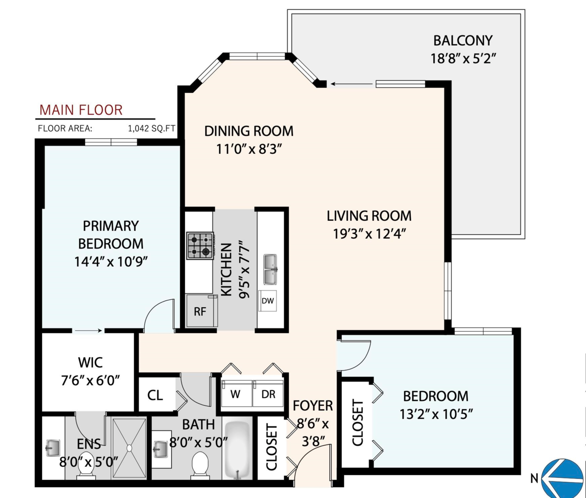 | Main Level | Primary Bedroom | 14'4 x 14'4 ft |
