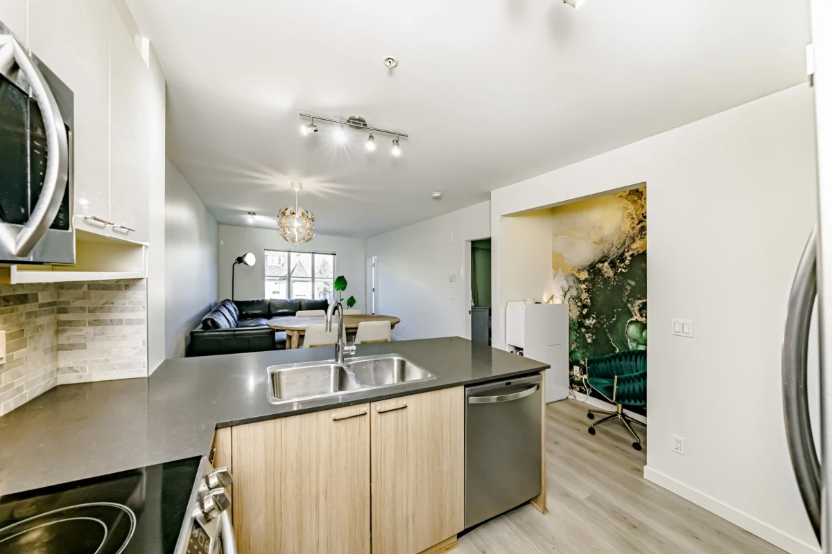 Welcome to this bright and spacious 1-bedroom plus den home built by Blue Tree Homes, offering modern comfort and unbeatable convenience. This beautifully maintained suite features brand new vinyl plank flooring and an open-concept layout filled with natural light. The functional den is ideal for a home office or hobby space. Enjoy excellent building amenities, including a fitness Centre, plus the added bonus of one parking stall and one storage locker. Located in a fantastic neighborhood, you’re just steps to shopping,dining,recreation —IKEA, Superstore, Canadian Tire, and more are all nearby. Quick access to Braid SkyTrain Station and the freeway makes commuting a breeze. Perfect for first-time buyers, downsizers, or investors seeking a quality home. O/H Sat 1-3 & Sun 2-4