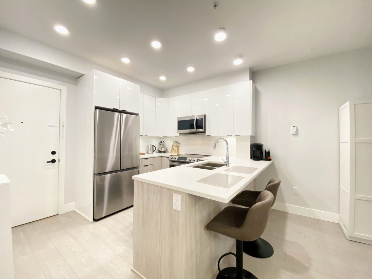 Fresh Price! Quiet 1-bed, 502 sf unit on the 2nd floor, away from traffic, facing the courtyard, and steps away from the future Skytrain station! Features include under-cabinet lighting, oversized laundry, and summer-cool layout with A/C option. Amenities include: Gym, party room, 2nd-floor garden, bike & storage rooms, secure oversized parking, and two meeting rooms. Walk to nearby restaurants and shops with transit nearby! Great investment, great for down-sizing or a great choice for a First Time Homebuyer. Serious Value Available Today! Open House Sunday Oct 12, 2025 from 1-3pm.