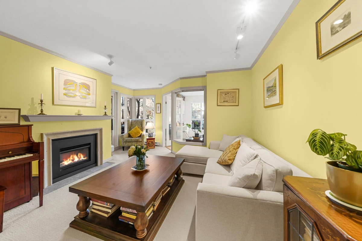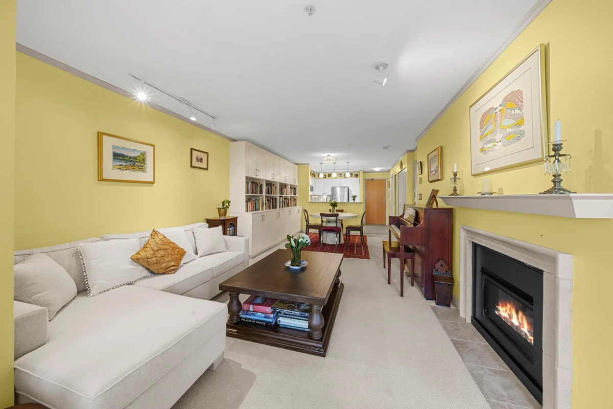 Welcome to this charming home at The Carlings, located in the heart of Arbutus Walk and offering the best of Kitsilano living. This quiet side-facing unit boasts a spacious floor plan with a cozy living and dining area, a gas fireplace, and a renovated open-concept kitchen with s/s appliances. The large primary bedroom features a walk-through closet and ensuite, while the second bedroom—perfect for an office or guest room—is also generously sized. Step out onto your private balcony, offering a peaceful side-facing outlook. Close to schools, parks, restaurants, transit, and the beach, and just 10 minutes from the future Arbutus SkyTrain station. Perfect for a young family or those looking to downsize. Move-in ready—make this your dream home!