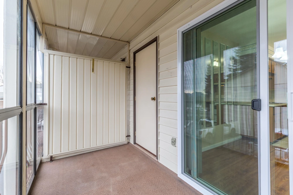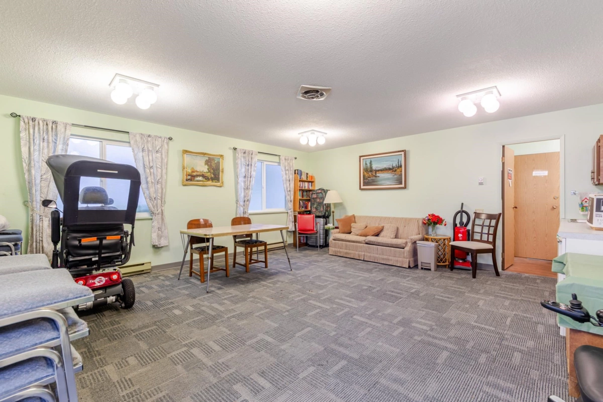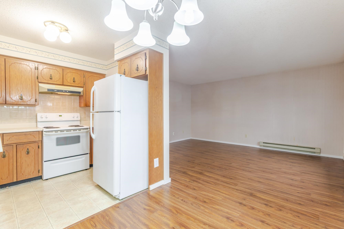 Welcome to Bourquin Court, a quiet 55+ townhouse community offering 930 sq. ft. of low-maintenance living. This 2-bedroom, 1-bath home features a bright, functional layout with spacious living and dining areas opening to a private balcony. Laminate flooring in the main living areas and carpeted bedrooms provide comfort and practicality. The bathroom was professionally renovated in 2022. The complex has recently completed roof and window upgrades. Additional features include a dedicated storage room, workshop, and guest suite. Conveniently located close to medical offices, banking, shopping, and everyday amenities, ideal for downsizers or retirees.