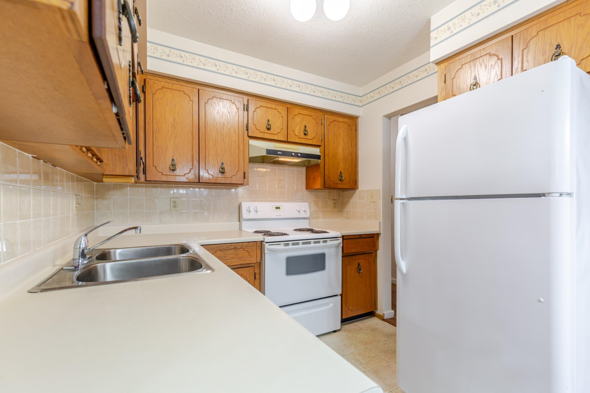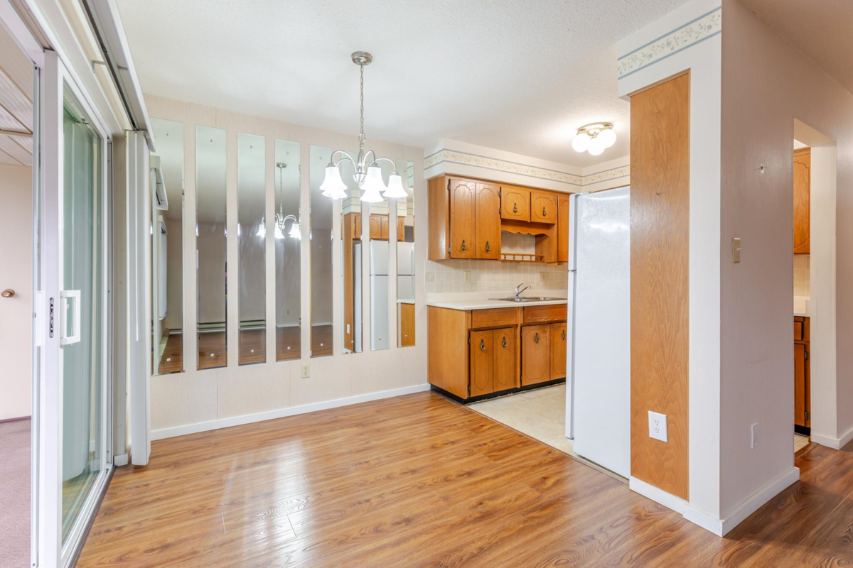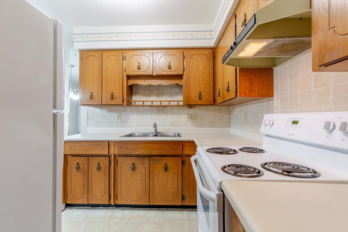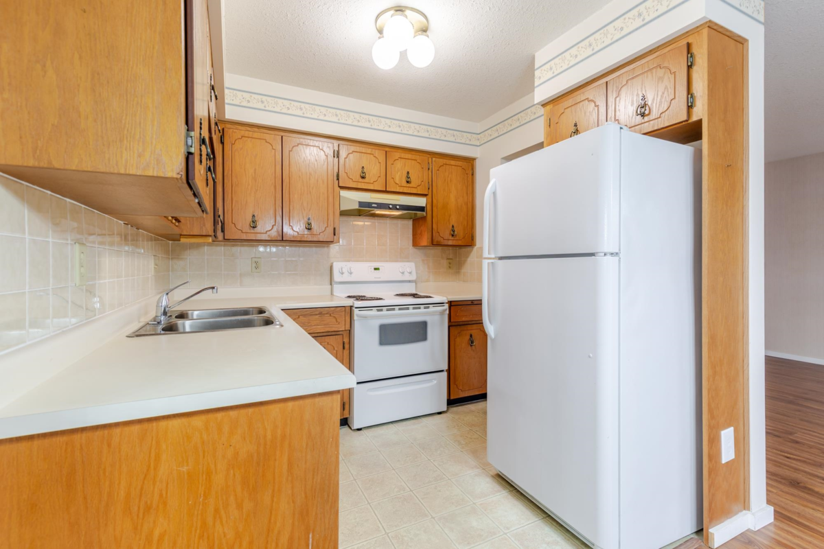 Welcome to Bourquin Court, a quiet 55+ townhouse community offering 930 sq. ft. of low-maintenance living. This 2-bedroom, 1-bath home features a bright, functional layout with spacious living and dining areas opening to a private balcony. Laminate flooring in the main living areas and carpeted bedrooms provide comfort and practicality. The bathroom was professionally renovated in 2022. The complex has recently completed roof and window upgrades. Additional features include a dedicated storage room, workshop, and guest suite. Conveniently located close to medical offices, banking, shopping, and everyday amenities, ideal for downsizers or retirees.