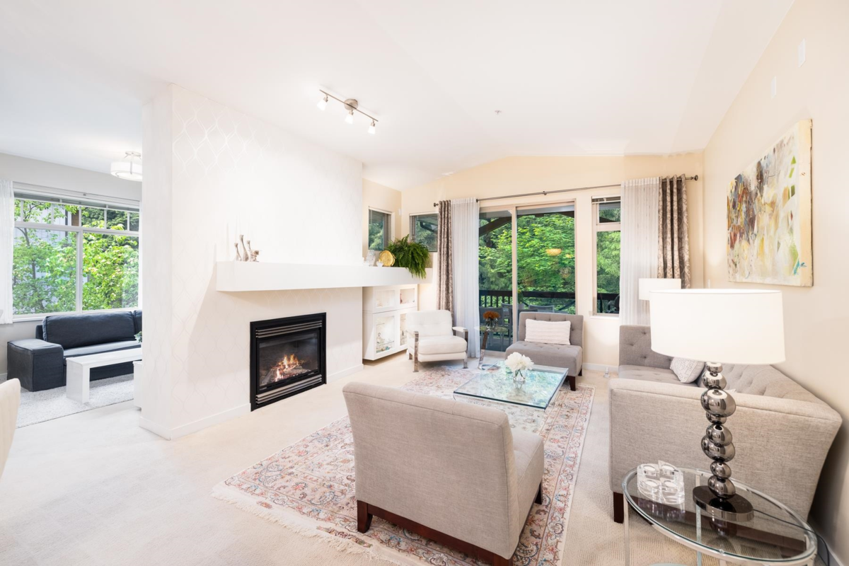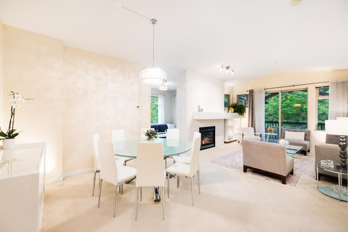Rare Find! Experience rare TOP FLOOR (no unit above!) spacious One-Level Condo in prime Edgemont location. Enjoy 2 large bedrooms, 2 bathrooms, a full laundry room, and a huge private deck in this expansive 1350 sqft condo with high vaulted ceilings and no one above you. The open living room, dining room, and kitchen with family room/nook offer perfect spaces for entertaining. Radiant infloor heating throughout. Heat is included in the monthly strata fee. Walk to Edgemont Village, river trails, and enjoy free access to Capilano Suspension Bridge. Very proactive strata with new roof and new boilers. 2 dedicated large side by side parking spots with a private EV charger, and a big private storage unit. Top school catchments of Highlands Elementary and Handsworth Secondary. Pets welcome.