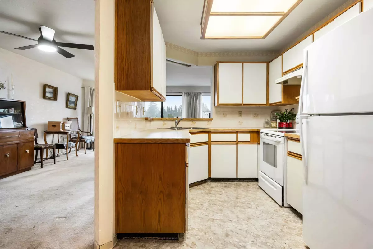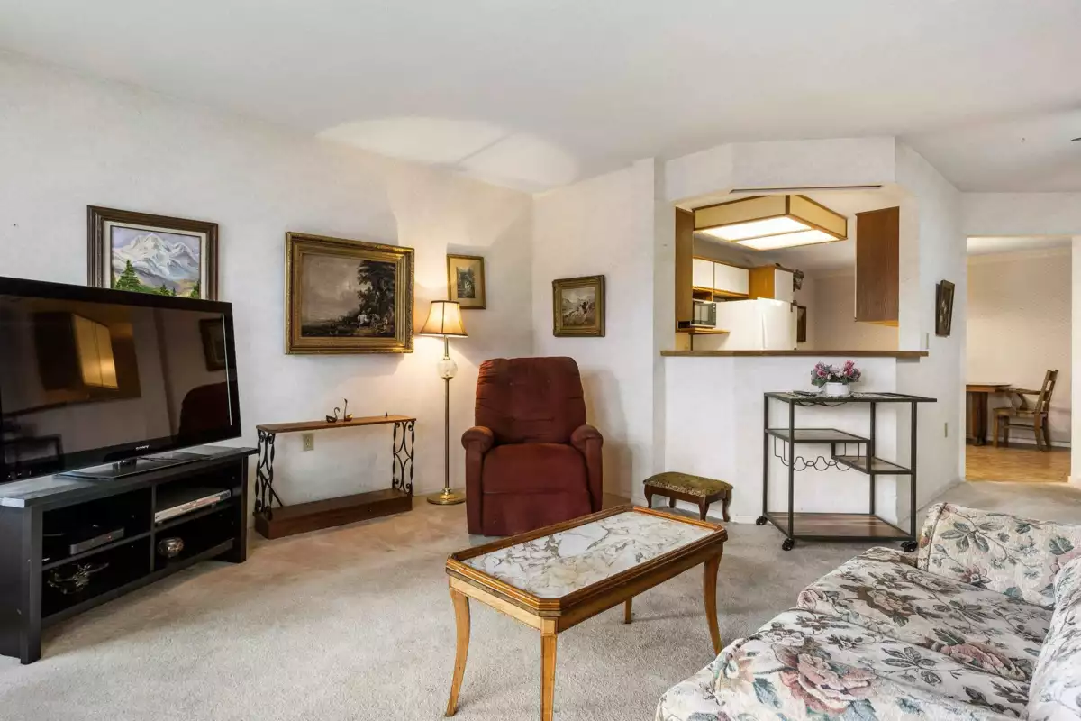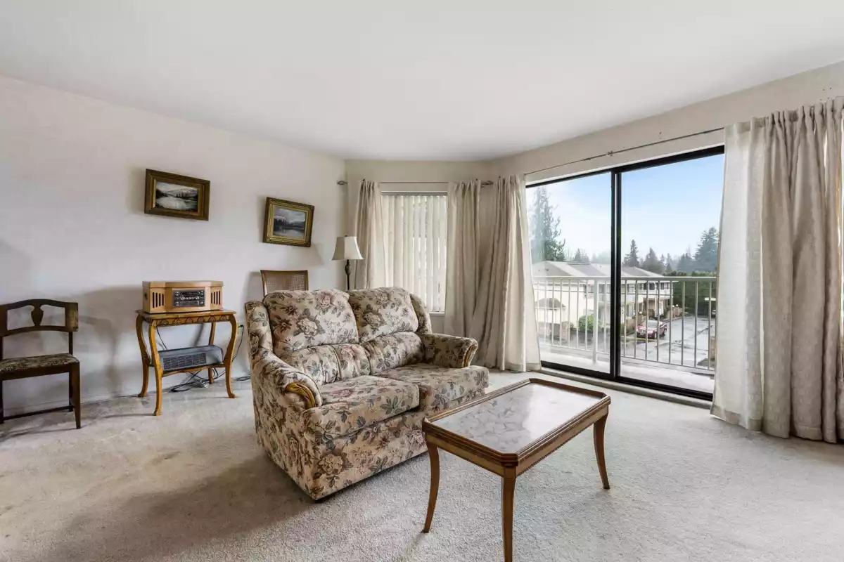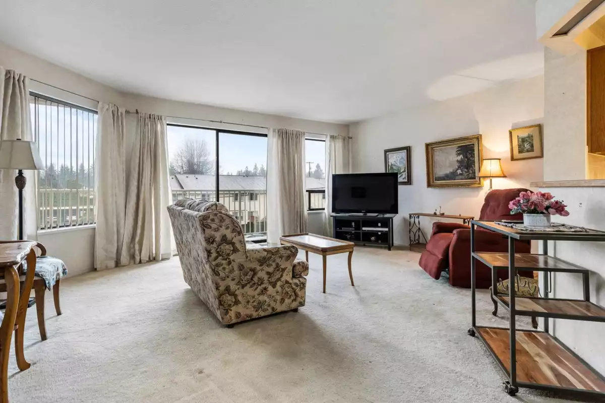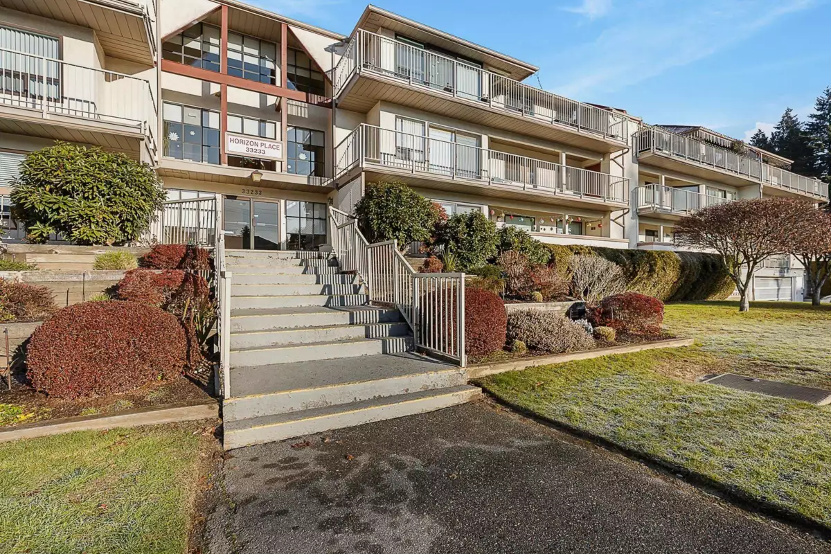 Soak up sunlight & mountain views from this spacious, SOUTH facing 55+ condo just steps from Mill Lake! The layout feels like a rancher style home with the convenience of condo living; 2 generous sized bedrooms, large eat-in kitchen, oversized living room flooded with natural light & access to a massive balcony where you can take in beautiful mountain views plus in-suite storage room, additional storage locker, secure underground parking, visitor parking, guest suite, library, common room & workshop for residents. Located in the desirable Horizon Place, this well-managed 55+ community offers a quiet, peaceful lifestyle just steps to Seven Oaks Shopping Centre & all the amenities you need. Well cared for & ready for your personal touch, enjoy an effortless & walkable lifestyle.