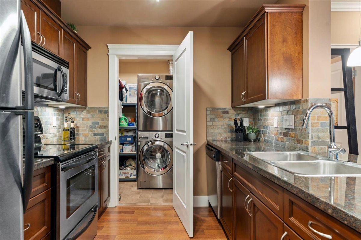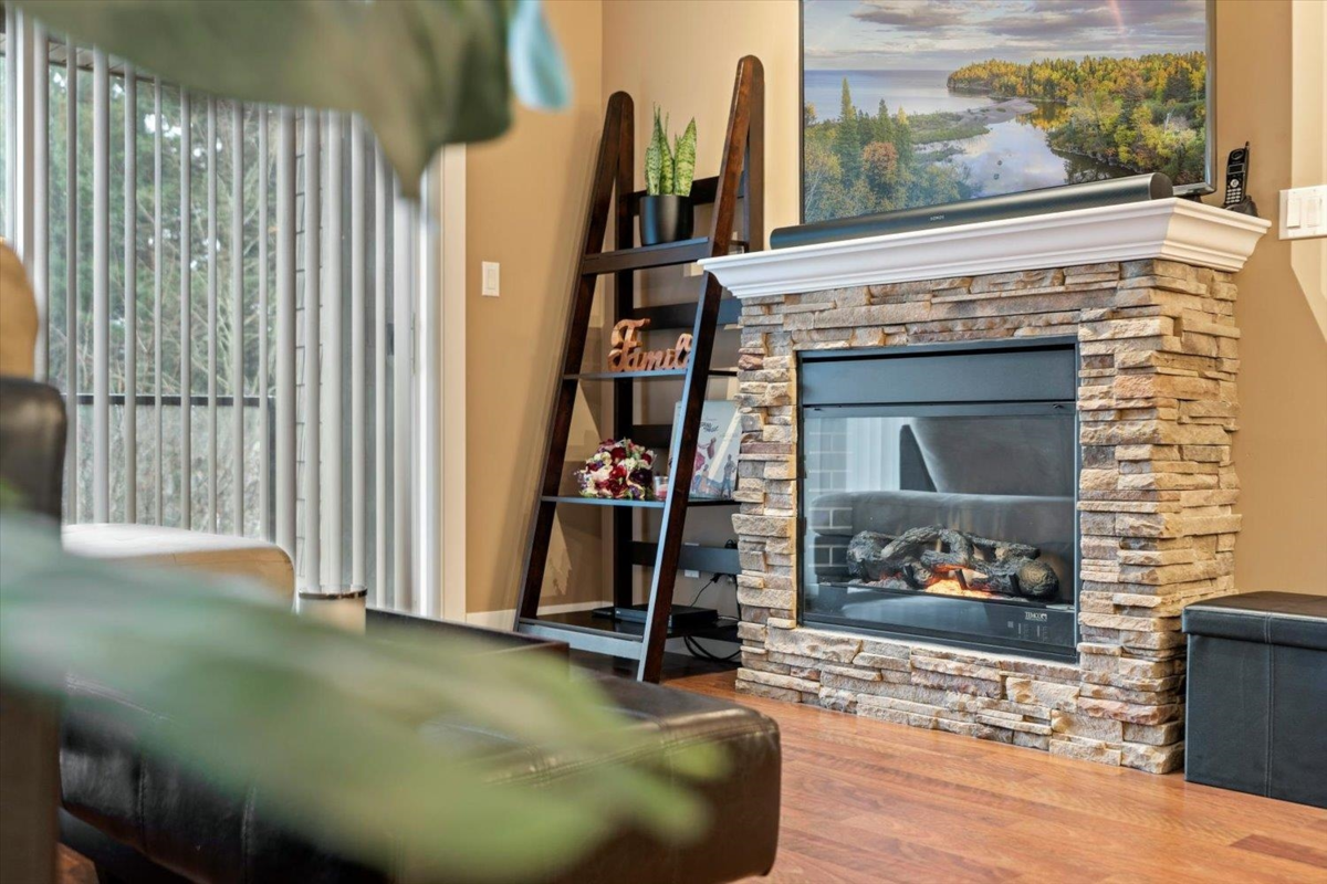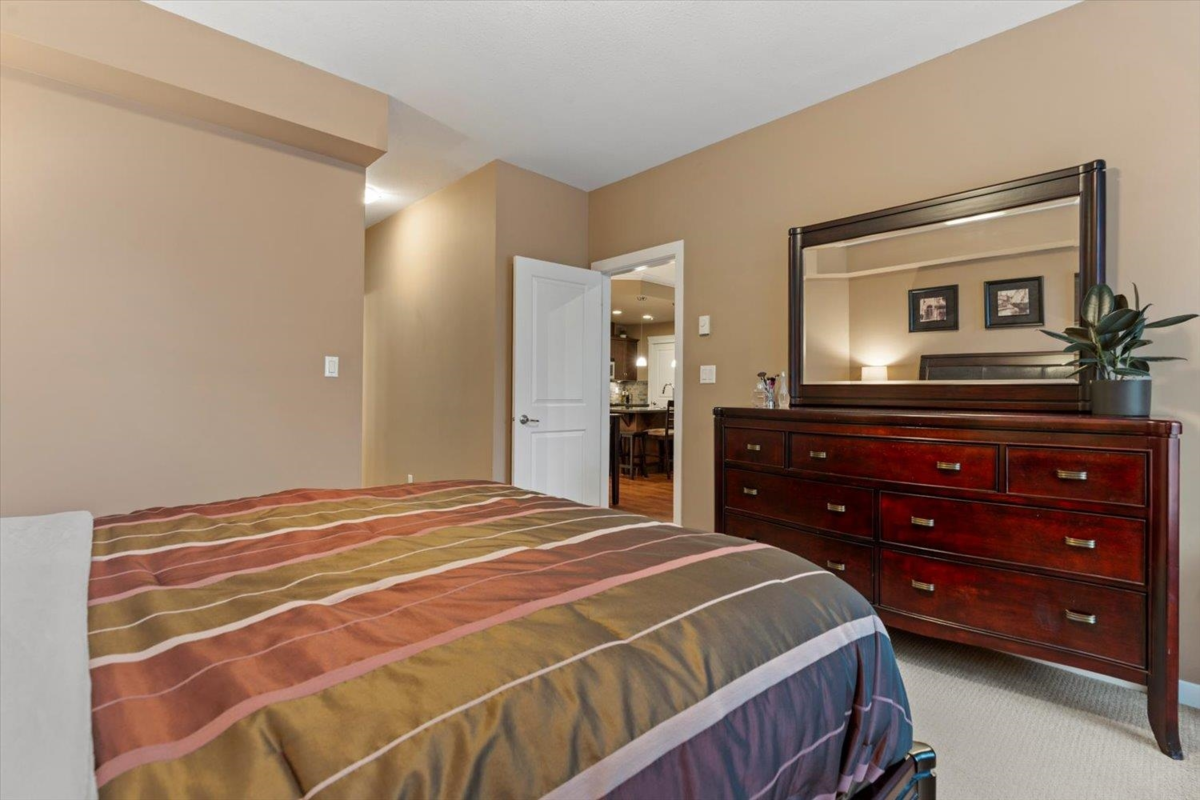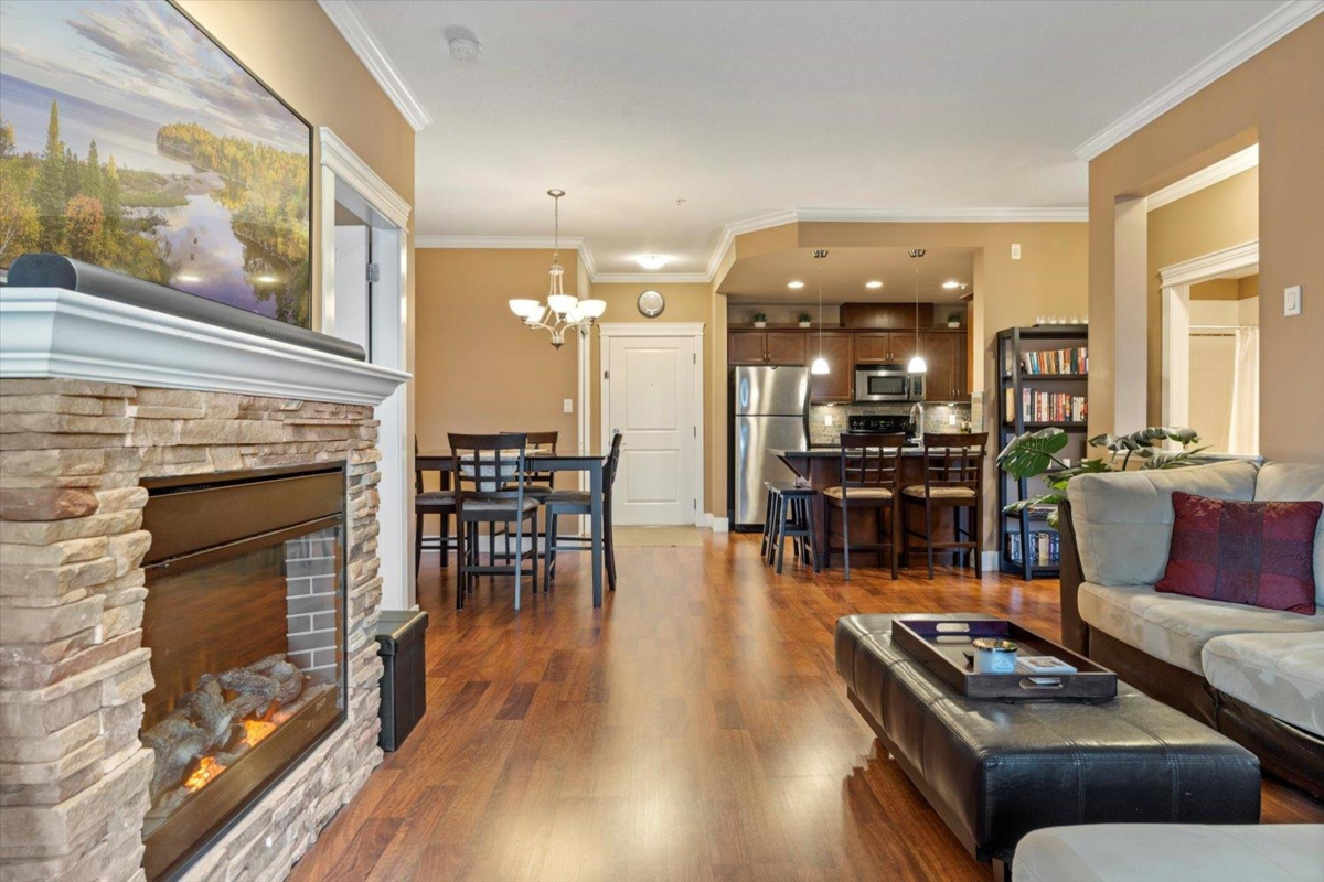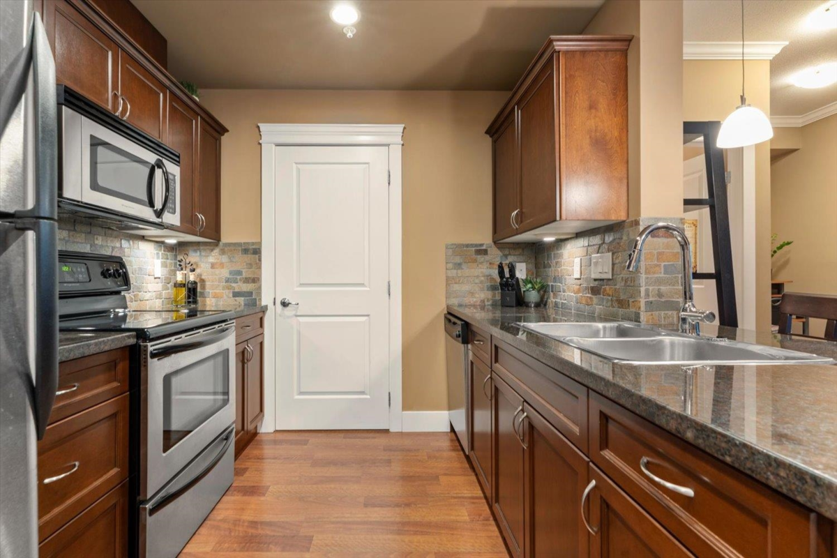Welcome home to The Sterling. This home is in immaculate condition and features 2 bedrooms plus a den, 2 bathrooms, 2 parking stalls, and a storage locker. The open kitchen features shaker style cabinets, stainless appliances, tile backsplash, granite counters, and an eating area. Other quality features include a spacious living room with cozy fireplace, a private north facing balcony, 4 piece main bathroom, and in-suite laundry. The primary bedroom includes a full ensuite and plenty of closet space. This home is in a great central location close to all levels of schools, the hospital, shopping, and walking distance to many amenities. This complex also includes EV charging, a car wash area, and bike room. Pet friendly and rentals are allowed. Call today to view this home!
