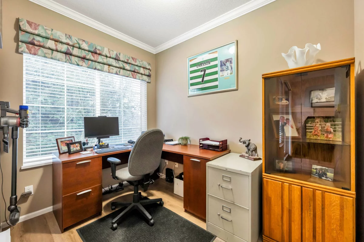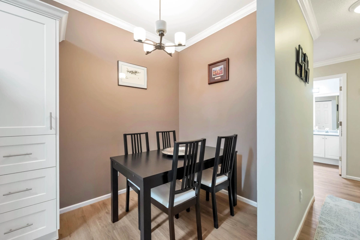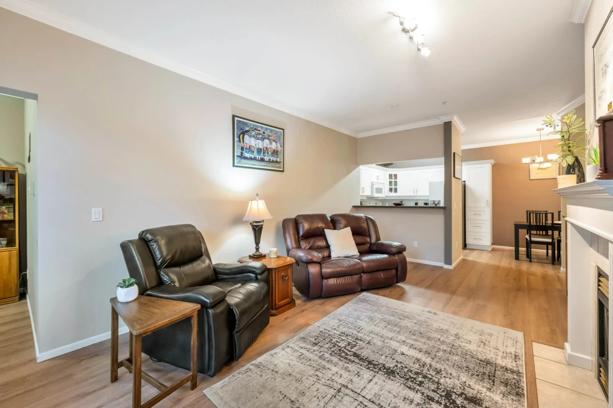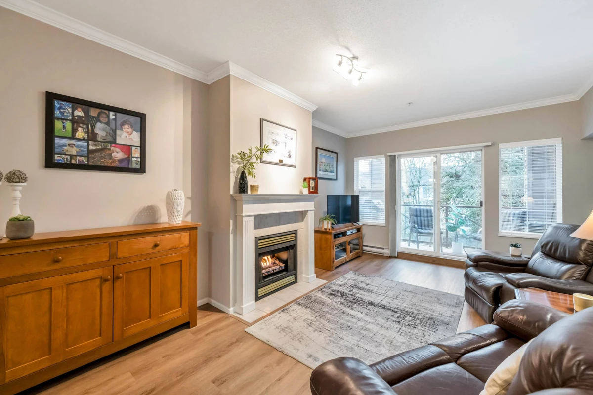 Adlington Court! Rarely available 2 bedroom, 2 bathroom plus dedicated den condo, an exceptional find, as true den spaces are seldom offered. The versatile den is perfect for working from home, crafts, kids’ room, or guest space. Recent updates & features include new building piping, laminate flooring, Hunter Douglas blinds, & crown moulding throughout. The spacious primary bedroom features two closets and a private ensuite, while bright living and dining areas offer 9-foot ceilings. A large updated kitchen w/ eating area, cozy gas fireplace, and gas BBQ hookup add comfort. Enjoy an east-facing balcony, secure parking, and a storage locker, with gas included in the maintenance fee. Walk to shopping, amenities, and transit. Nothing to do but move in, Call Today!