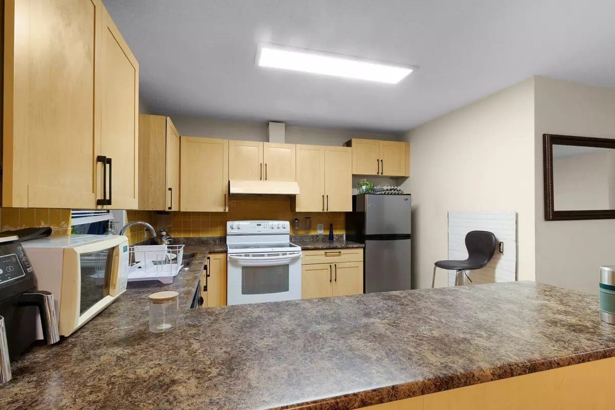 Welcome to this beautifully renovated 2-storey corner townhome with a private balcony and rooftop deck, ideal for relaxing or entertaining. This bright unit offers three spacious bedrooms with great ventilation, 1.5 updated bathrooms, and a bonus den/office with baseboard heater. Upgrades include new flooring, modern kitchen counters and cabinets, fresh paint, updated lighting, and refreshed washrooms. Enjoy two parking stalls and ample storage. Conveniently located near elementary and secondary schools, Superstore, shopping, bus exchange, library, and rec centre—ready for a loving family.