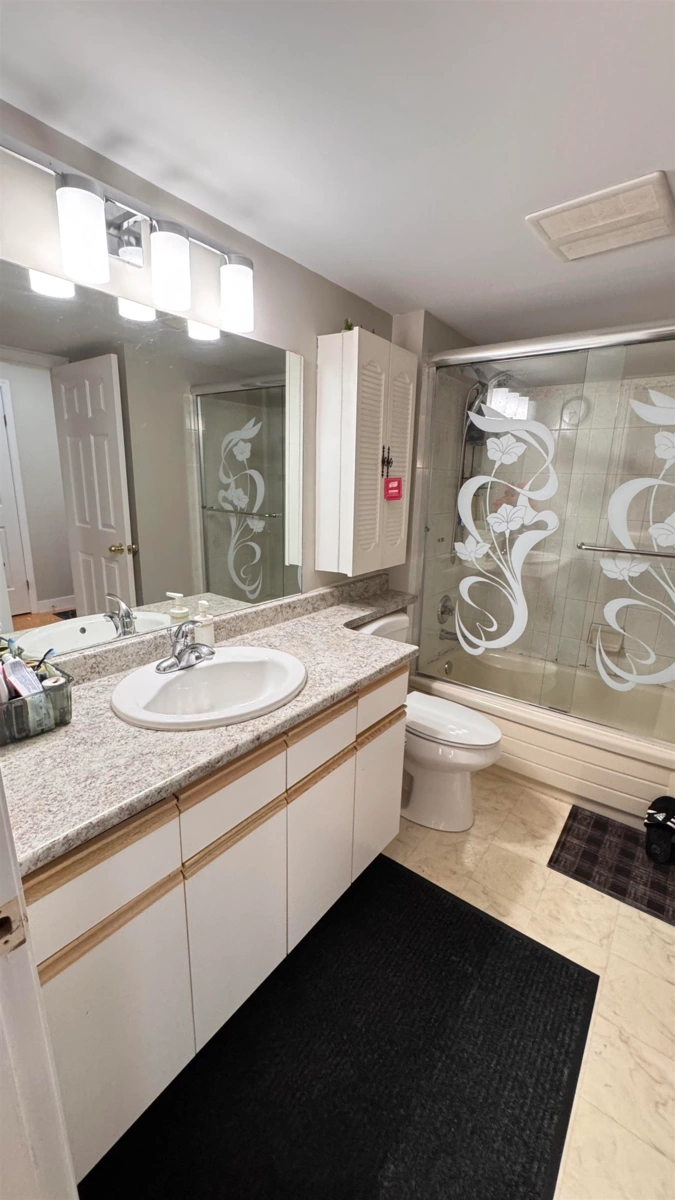 Beautifully updated and extremely spacious 2-bedroom condo in a quiet cul-de-sac location. Features a large in-suite storage room, huge primary bedroom with cheater ensuite, and an oversized second bedroom. Bright open layout with a generous kitchen and eating area. Gas fireplace, heat and hot water included in strata. Enjoy mountain views from the balcony. 2024 updates: New washer & dryer, and a new dishwasher. Pet-friendly building with a 2019 roof (25-year warranty). Move-in ready—nothing to do but enjoy!
