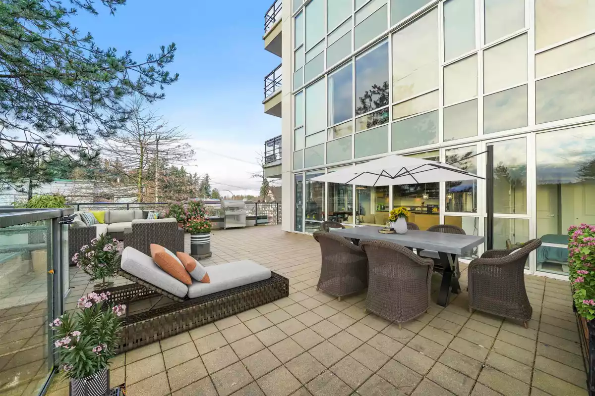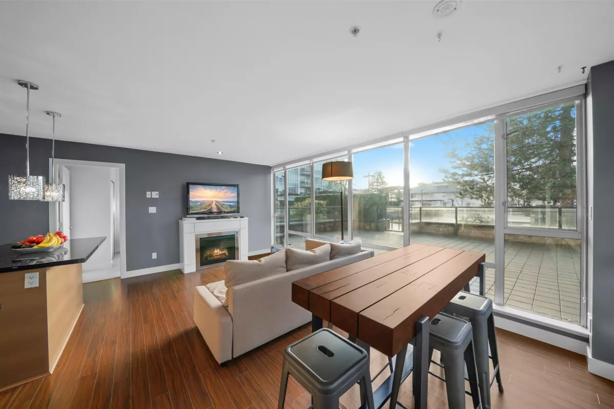 An entertainer's delight! Welcome to this exceptional 2 bed, 2 bath + sunny Den & your very own private patio spanning over 700 SF! An incredibly rare offering- enjoy urban living w/ incredible walkability + expansive outdoor space. Host family & friends & watch the beautiful sunset from your living room, or stretch out & do your morning yoga on your patio. You no longer have to choose between a central location or outdoor space- you deserve both! Inside, abundant natural light streams through the floor to ceiling windows, illuminating every corner of this home. With an efficient floorplan, no space is wasted! Walk to the Rec Center, library, daycares, coffee, doctors, dentists, chiro, & more. 1 locker & 1 parking Incl. **Sorry, no pets.