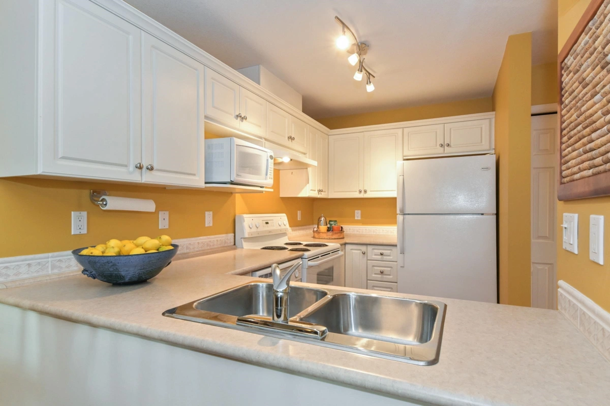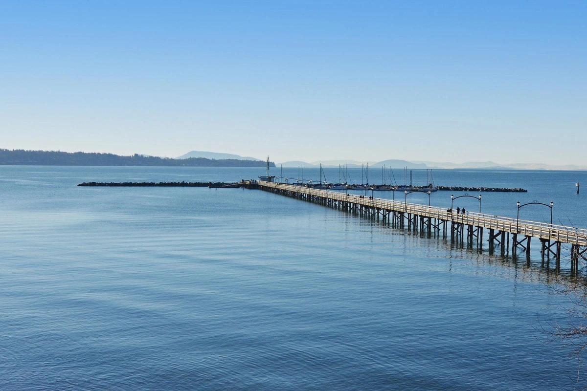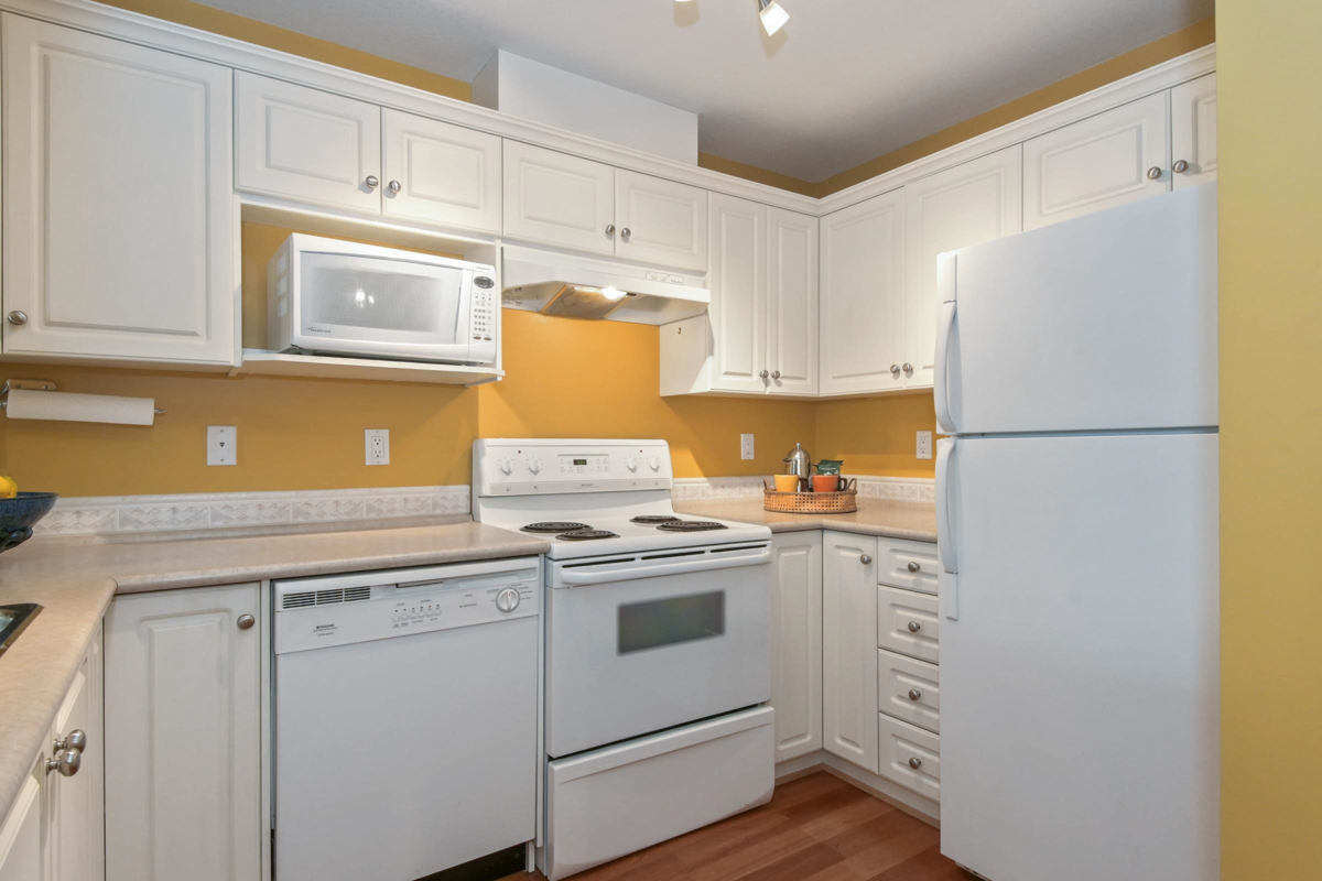 Exceptional opportunity for anyone looking for a well-designed home to embrace the White Rock seaside lifestyle. This corner suite boasts a highly functional floorplan thoughtfully separating the entertainment size living & dining areas from the private bedroom wing. The bedrooms are spaced well apart, enhancing privacy & flexibility for guests, home office, or shared living. Notable features include: gas fireplace, huge in-suite laundry/storage room, windows in both bathrooms, an inviting covered balcony, plus parking stall & storage locker beside each other close to the elevator. Well maintained building walkable to shops, cafes, restaurants, live music & performance theatres, farmers' market, schools, hospital, transit, recreation, over 8 km of sandy beach, and the iconic pier!