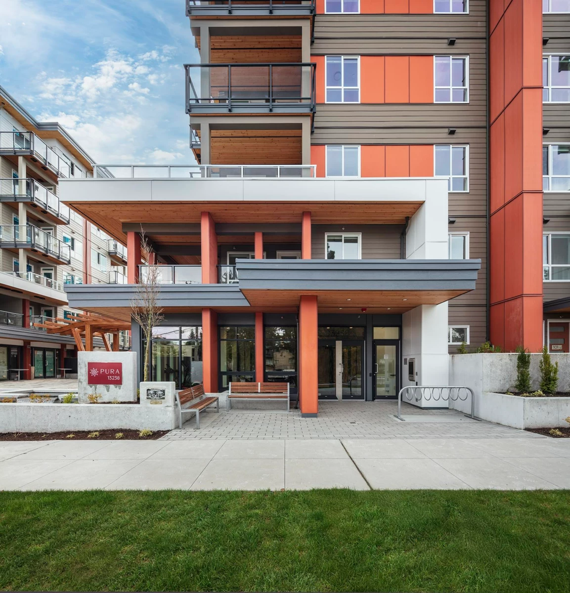 PURA - a collection of 1 to 2 bedroom + den urban homes built by Adera Developments. These homes are sustainable and built with enduring Mass Timber in Surrey Central's blossoming West Village. Just steps away from parks, schools, shopping, dining and 2 SkyTrain stations. Amenities include rooftop terrace with gas fireplace as well as putting greens, high-end fitness facilities and a co-working lounge. Every home features radiant in-floor heating and full size SS appliances package including gas range and W/D. Strata fees include heat, hot water and gas. Presentation Centre open 12-5pm daily.